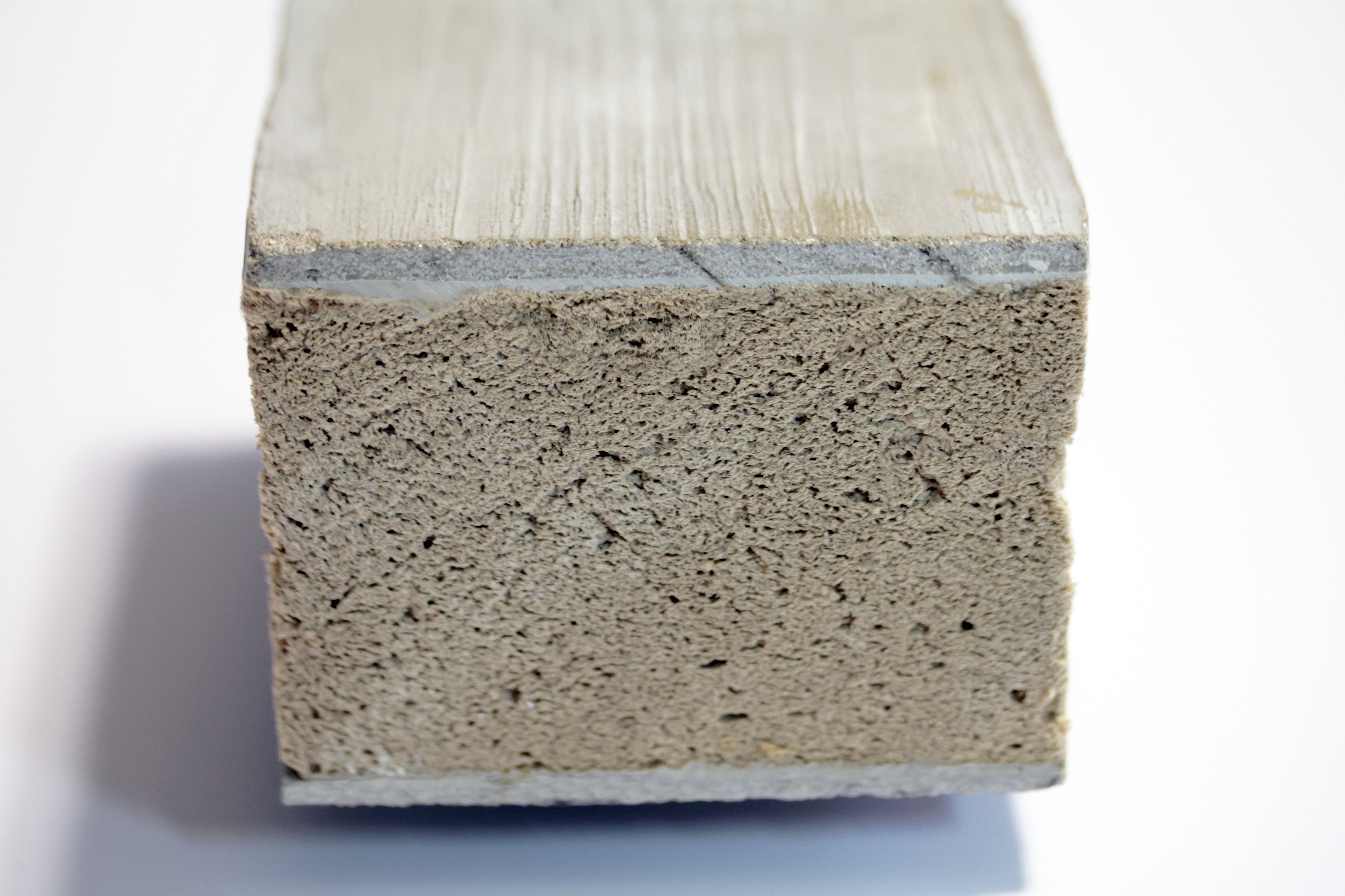 Wood-fiber materials are already being frequently used in the construction industry. The products used until now, such as fiberboard or oriented strand board, usually contain petrochemical binders. In an earlier research project, the scientists at the Fraunhofer WKI had already developed a wood foam which does not require artificial binders. Now, in cooperation with the Institute of Joining and Welding Technology at the TU Braunschweig, they have closely examined the potential of wood foam for practical applications in the construction industry. Together, they have developed a sandwich element comprised of a wood-foam core with a thin layer of textile-reinforced concrete applied to both sides.
