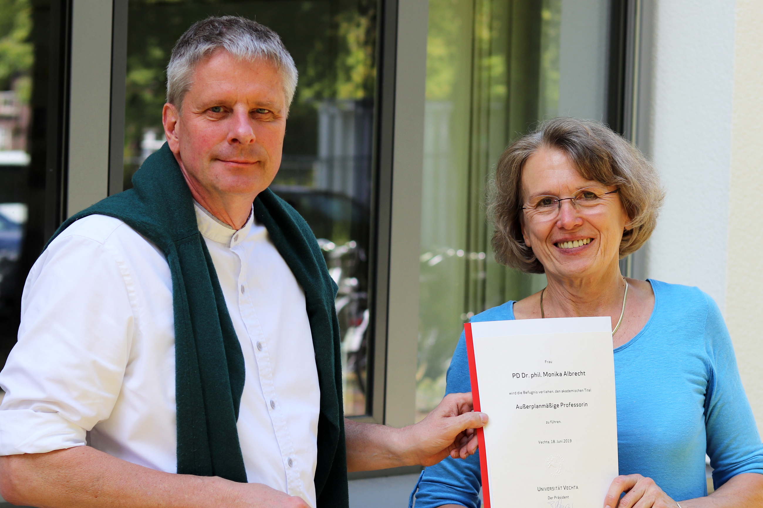 In der vergangenen Woche wurde Privatdozentin Dr.in Monika Albrecht mit einer außerplanmäßigen Professur geehrt. Die Kulturwissenschaftlerin ist seit 2013 Wissenschaftliche Mitarbeiterin an der Universität Vechta und lehrt im gleichnamigen Fach in der Fakultät III – Geistes- und Kulturwissenschaften.