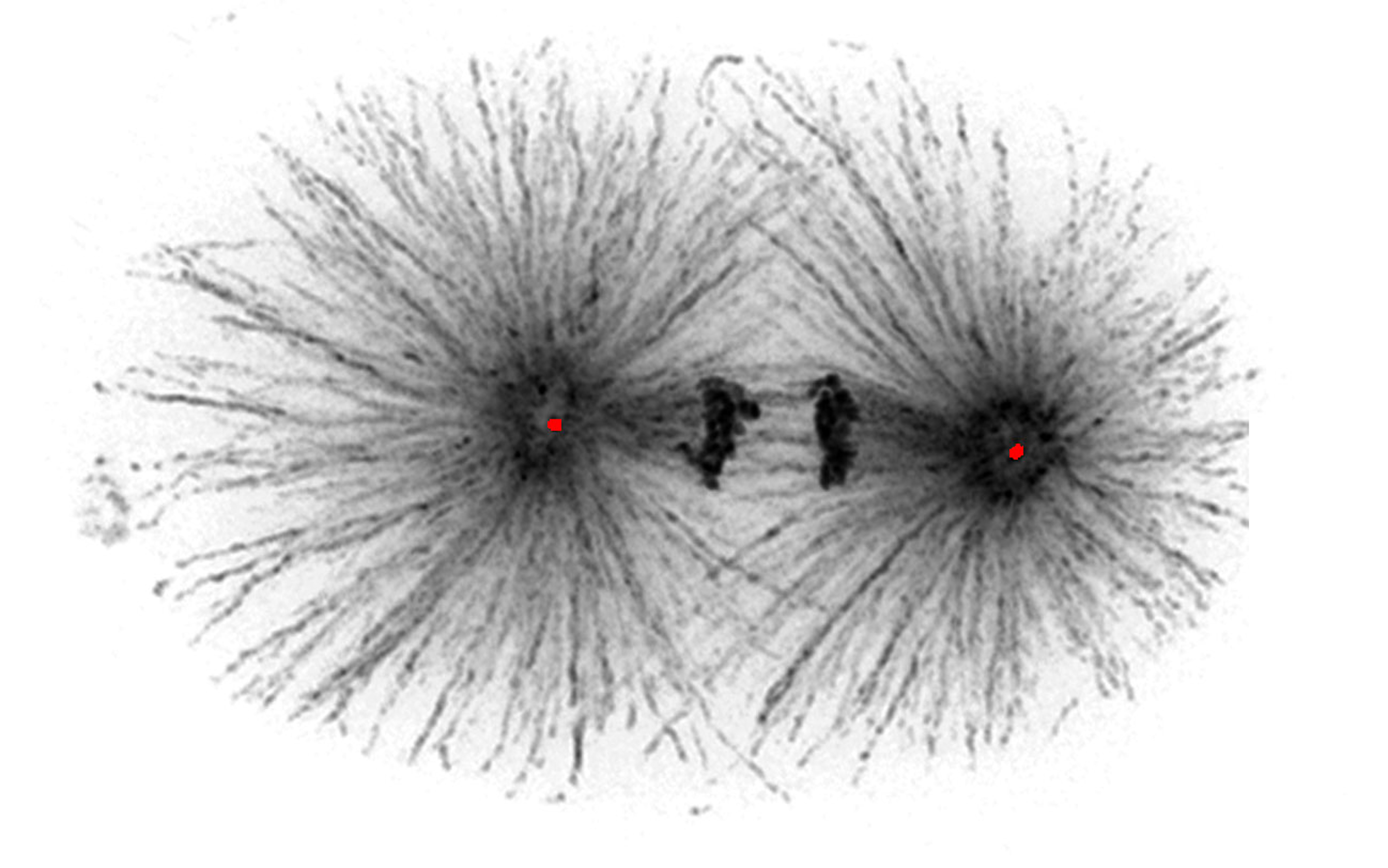 Bei der Mitose bildet sich eine fadenförmige Spindel, die sicherstellt, dass Chromosomen ordnungsgemäß verteilt und an gegenüberliegenden Enden der Zelle positioniert werden. Ähnlich wie Lastenseile braucht auch die Spindel einen Bezugspunkt, von dem sie sich entwickeln kann. Dieser Punkt wird von Zentriolen gebildet, die ein Netz aus Proteinen, das sogenannte perizentriolare Material (PCM), um sich anhäufen und somit Zentrosomen bilden. Diese die-nen als Ausgangs- und Ankerpunkt der Spindelfäden.
