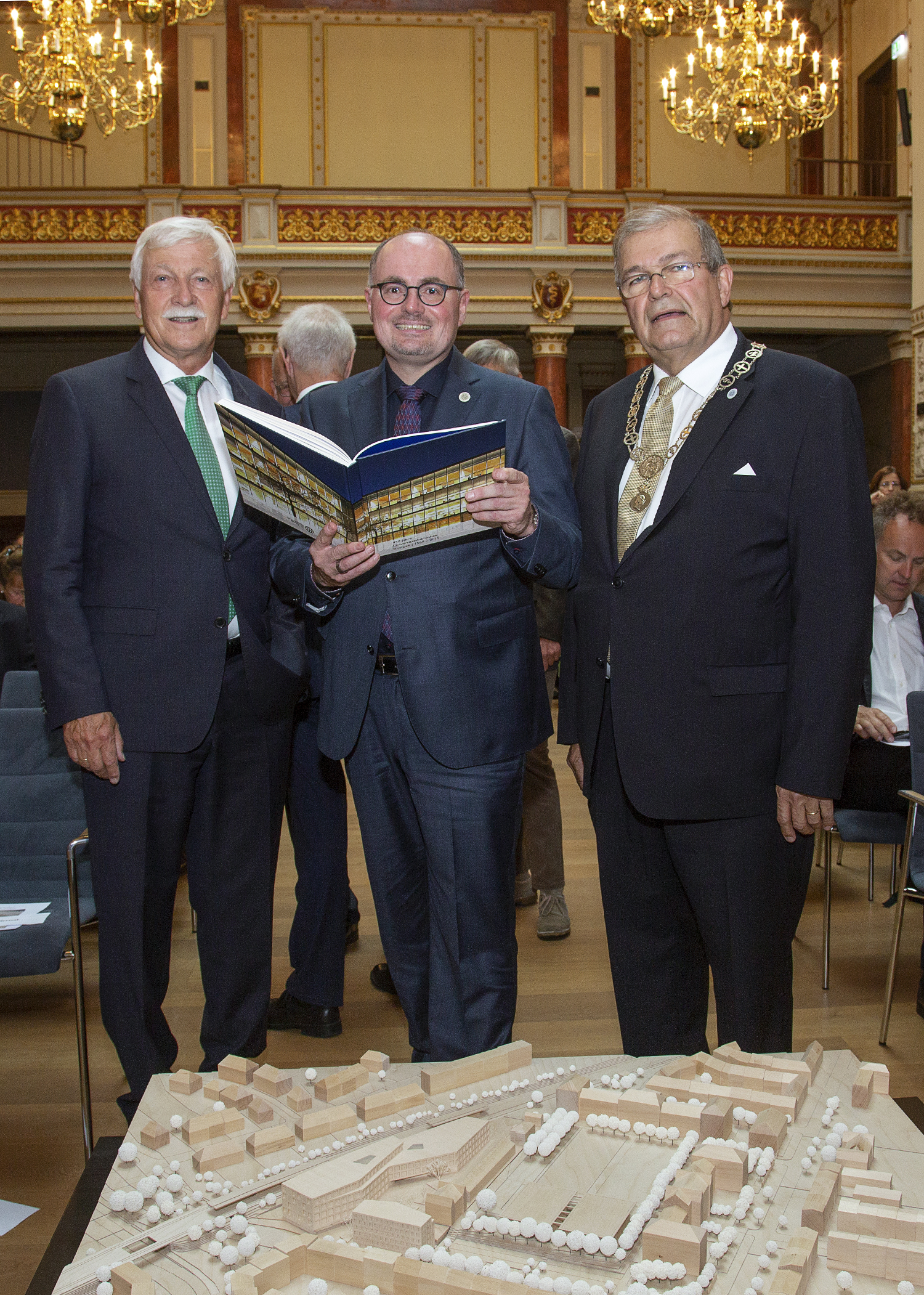 Anlässlich des 450. Jubiläum der Universitätsbibliothek Rostock überreichte der Direktor der Universitätsbibliothek Rostock Robert Zepf eine Festschrift an Bildungsministerin Bettina Martin. In der Festschrift spiegelt sich die Entwicklung von Forschung und Lehre in Rostock wider. Sie bietet eine Zeitreise von historischen Kostbarkeiten bis zu digitalen Forschungsdienstleistungen.