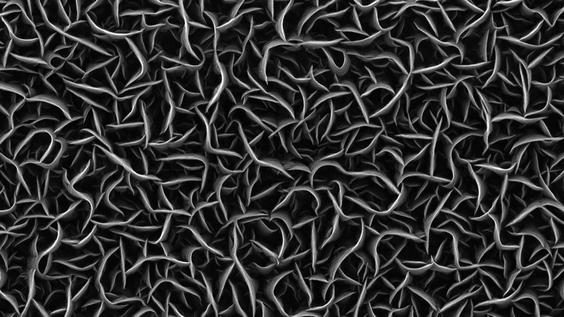 Das von den Physikern Dr. Nicolas Wöhrl und Sebastian Tigges hergestellte Katalysatormaterial besteht fast nur aus Oberfläche – perfekt für den Zweck: Je mehr Oberfläche zur Verfügung steht, desto mehr Reaktionen können gleichzeitig stattfinden.