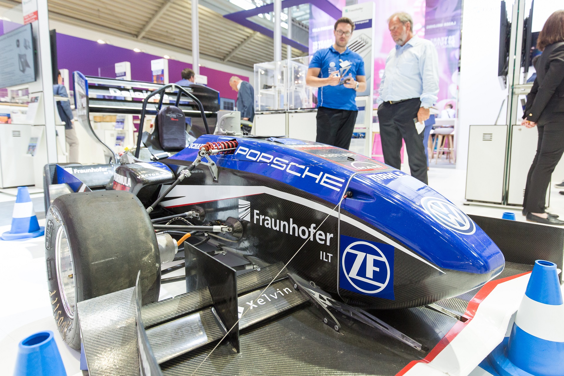 »Keine Elektromobilität ohne Laser« lautete ein wichtiges Motto der Laser-Messe: Wie es in die Praxis umgesetzt wurde, demonstriert der Elektro-Rennwagen »eace05« des Ecurie Aix – Formula Student Teams der RWTH Aachen in München. Für die mit knapp 180 Kilogramm Gesamtgewicht ultraleichte Karosserie des Rennwagens wurden CFK-Teile mit dem Laser geschnitten sowie die Batteriezellen laserverschweißt. Motor und Räder enthalten Teile, die ein 3D-Laserdrucker aus Metallpulver hergestellt hat. »Laserverfahren in der E-Mobility ermöglichen Prozesse und auch Produktqualitäten, die anders gar nicht denkbar wären«, erklärte Johanna Helm vom Fraunhofer ILT.