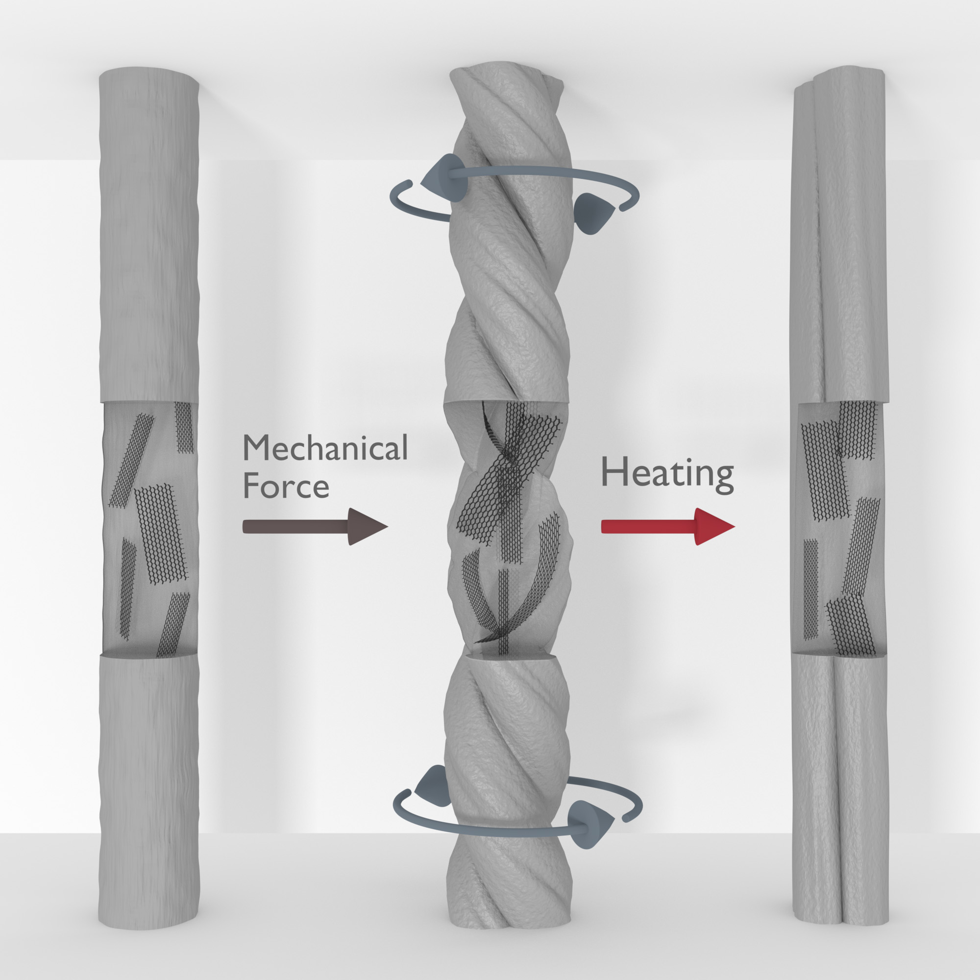 Der „Trick“ der Forscher, um eine hohe Energiedichte bei der Speicherung zu erreichen, besteht hauptsächlich darin, den Kunststoff mit winzigen Blättchen aus Graphenoxid zu versteifen. Hauptautor Jinkai Yuan, der an der Université de Bordeaux forscht, erklärt: „In den Experimenten zeigte sich, dass Graphenoxid den Kohlenstoff-Nanoröhrchen überlegen ist.“ Durch die günstige Orientierung der Nanoblättchen zur Deformationsrichtung der Faser und deren eigener Verformung wird mit Graphenoxid ein höheres Drehmoment erreicht.