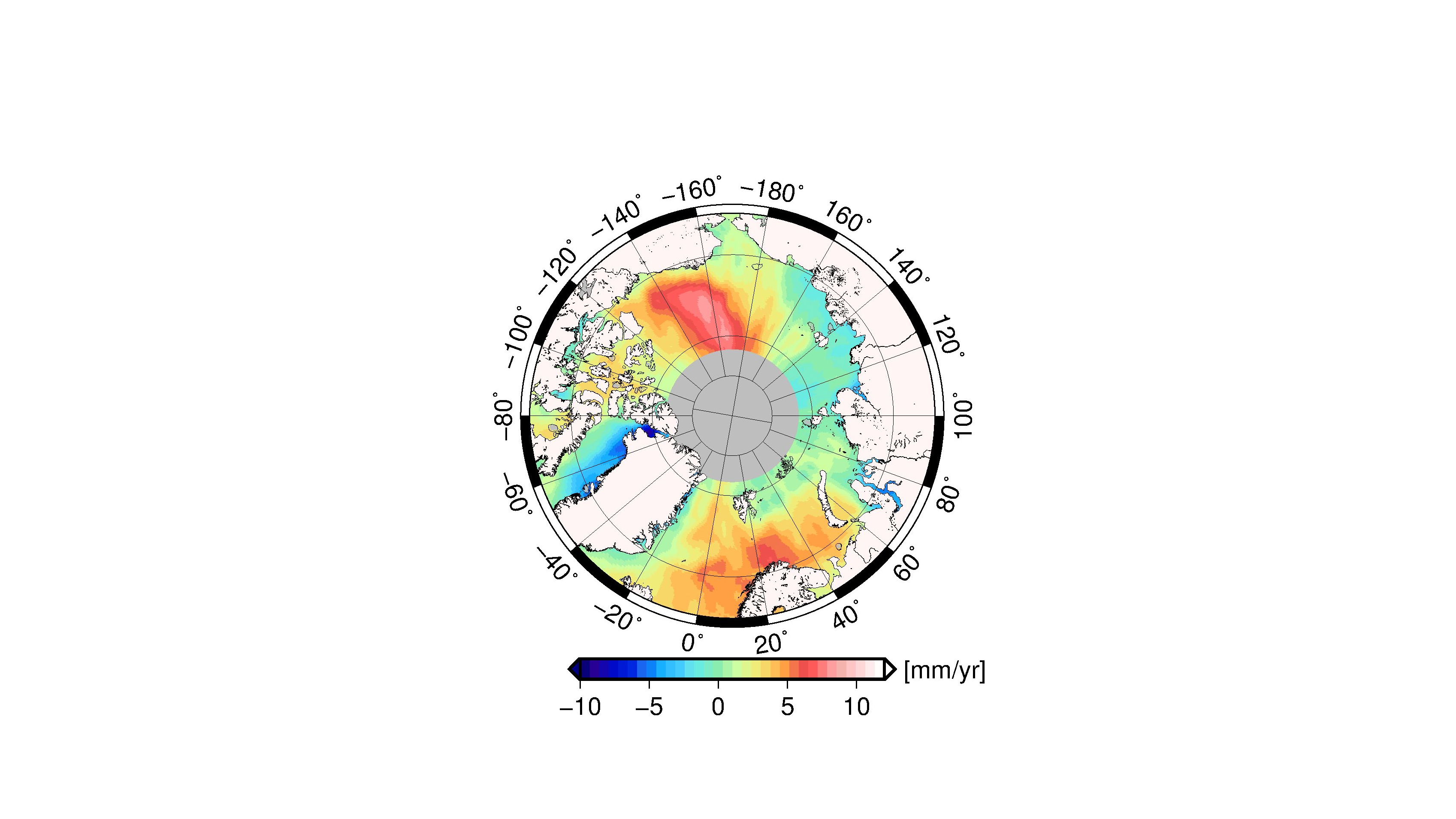 Gemeinsam erstellten die Wissenschaftlerinnen und Wissenschaftler für jeden Monat zwischen 1996 und 2018 eine Landkarte mit Gitterpunkten, welche die Höhe des Meeresspiegels anzeigt. Aus der Summe der Monatskarten lässt sich jetzt der langfristige Trend ablesen: Der Meeresspiegel in der Arktis stieg um durchschnittlich 2,2 Millimeter im Jahr.