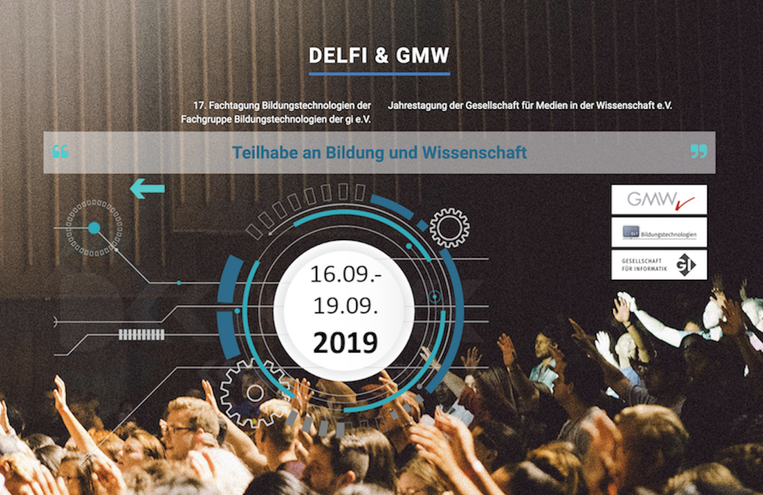Die Gesellschaft für Medien in der Wissenschaft (GMW) e.V. unterstützt als Fachgesellschaft für Fragen des Medieneinsatzes an Hochschulen die Erforschung und die sinnvolle Nutzung der Medien als integralen Bestandteil von Forschung und Lehre. Die GMW fördert die Erprobung mediengestützter Lernszenarien und treibt die kritische Reflexion über die Potenziale neuer Medien in allen Entwicklungsfeldern der Hochschule voran. Zur Erreichung der Ziele hat die GMW das Ziel, isolierte Einzelaktivitäten zusammenzuführen. Die GMW begreift sich deshalb als Netzwerk der interdisziplinären Kommunikation zwischen Theorie und Praxis, zwischen Wissenschaft und industrieller Anwendung im deutschen und europäischen Rahmen. Die Tagung "Teilhabe an Bildung und Wissenschaft" ist gleichzeitig die 27. Jahrestagung der GMW, die an wechselnden Orten stattfindet. Mehr Informationen unter https://www.gmw-online.de/