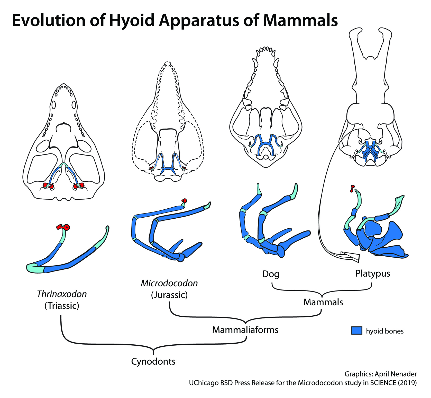 Chang-Fu Zhou, Bhart-Anjan S. Bhullar, April I. Neander, Thomas Martin, Zhe-Xi Luo: New Jurassic mammaliaform sheds light on early evolution of mammal-like hyoid bones; Science; DOI: 10.1126/science.aau9345