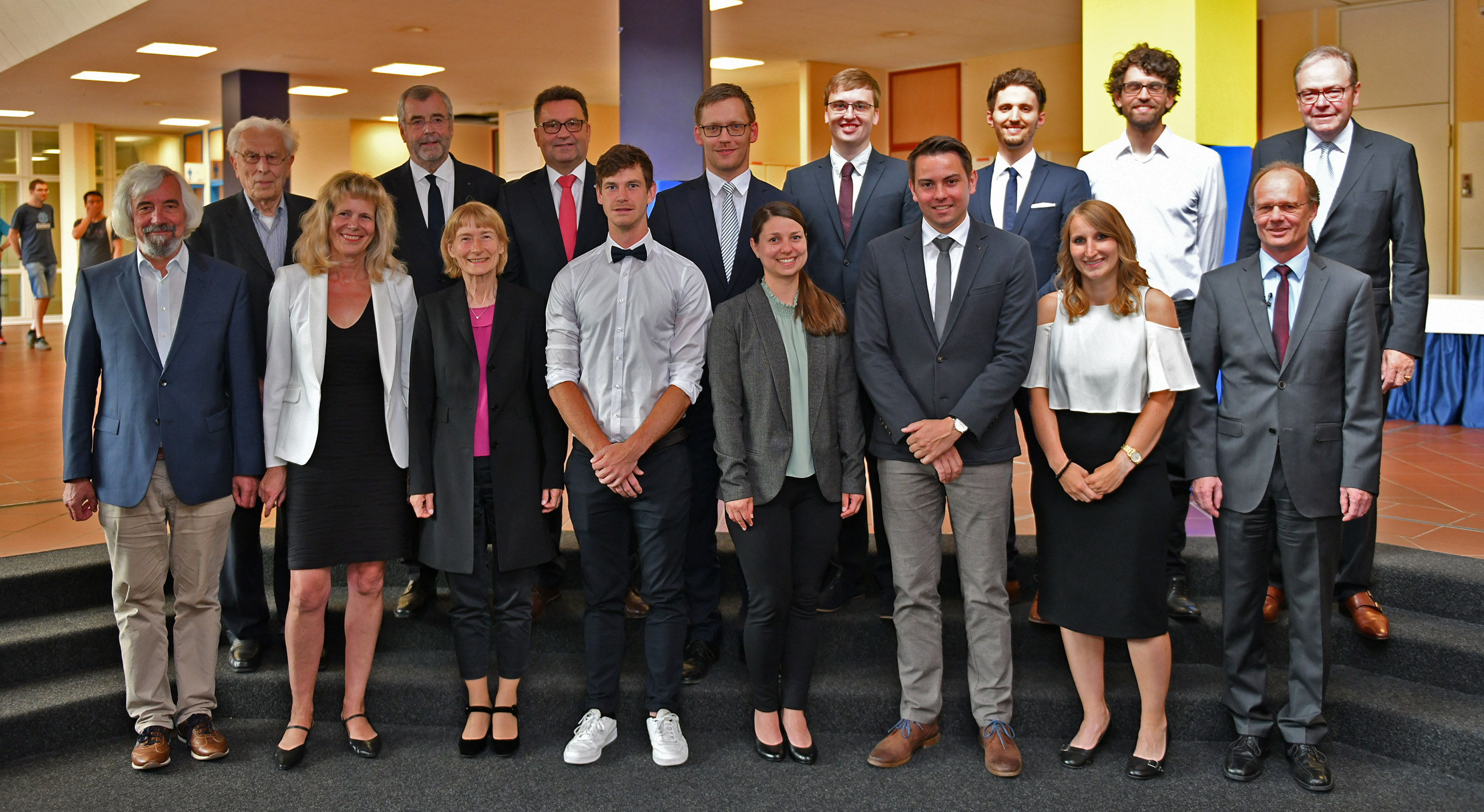 1. Reihe v.l.: Prof. Maximilian Haider, Prof. Renate Breuninger, Prof. Ute Kaiser, Janis Köster, Dr. Alexandra Capodeanu-Nägler, Dr. Jan Haase, Dr. Alexandra König, Universitätspräsident Prof. Michael Weber