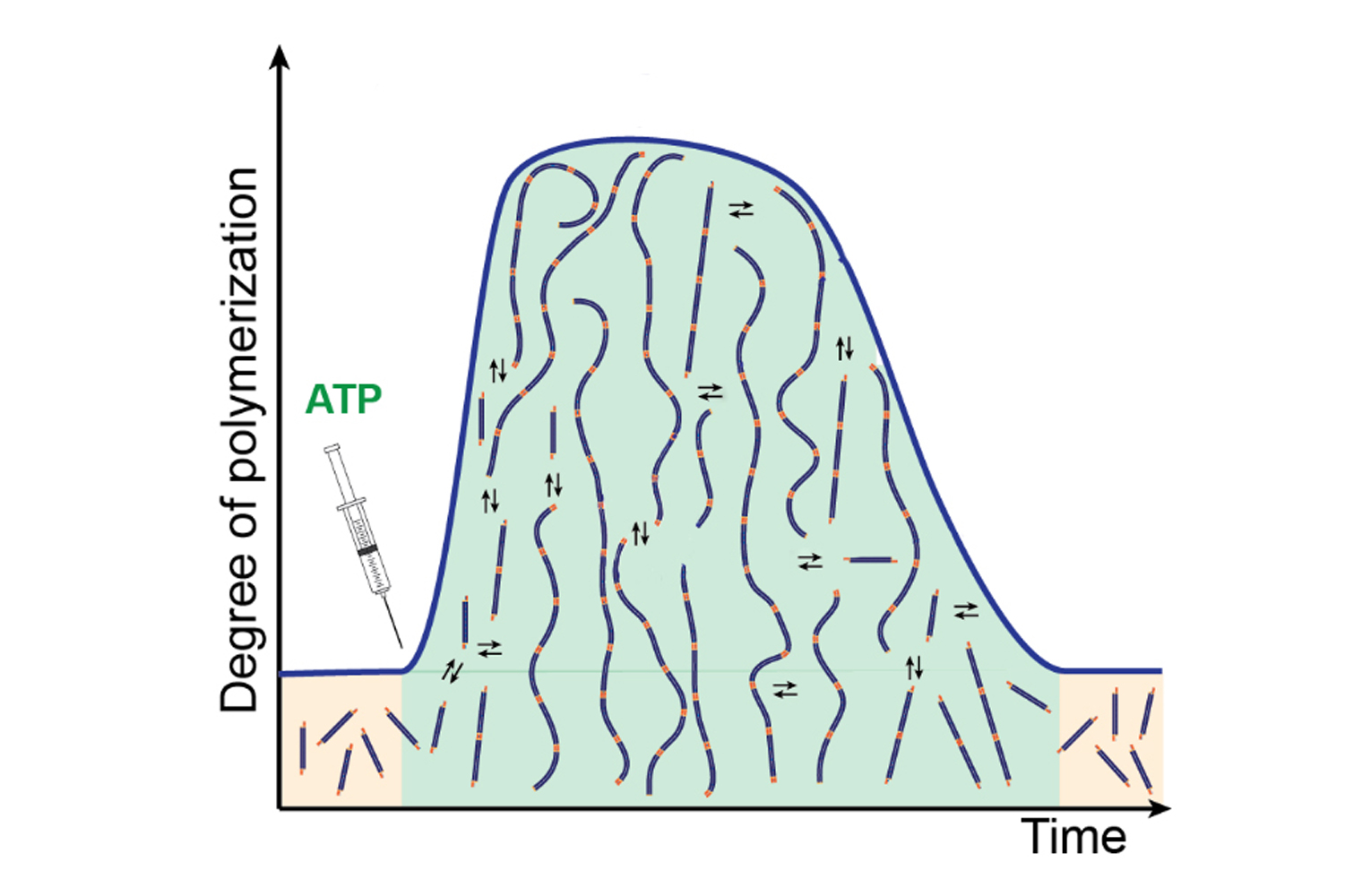 Cells assemble dynamically: their components are continuously exchanging and being replaced. This enables the structures to adapt easily to different situations, and by rearranging the components to respond to stimuli faster, to renew or to form just on demand. The microtubules, a scaffold structure made of protein fibers that can be found in the cytoplasm of the cells of algae, plants, fungi, animals and humans, are one such dynamic mesh. Because of their self-organizing structure, these fibers constantly form and degrade at the same time, thereby actively supporting the cell in complex tasks such as cell division or locomotion. The fibers require energy to form and maintain such dynamic states. Now, for the first time, Prof. Dr. Andreas Walther and Dr. Laura Heinen from the Institute for Macromolecular Chemistry and the Center of Interactive Materials and Bioinspired Technologies (FIT) at the University of Freiburg have succeeded in programming the dynamics of such dissipative, i.e. energy-consuming, structures in an artificial chemical system on the basis of DNA components. The researchers present their results in the latest edition of the journal Science Advances.