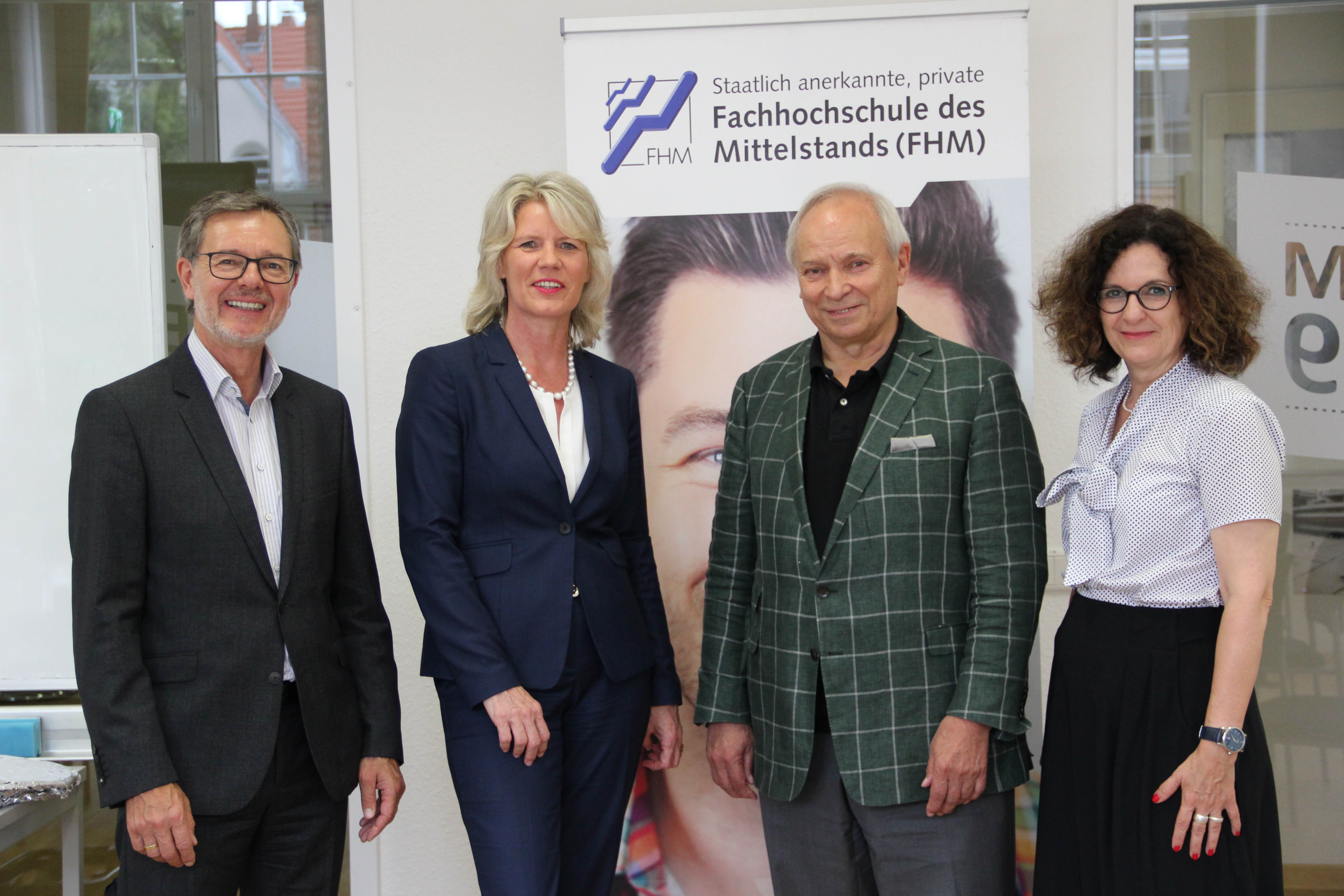 BU: Prof. Dr. Walter Niemeier, Prorektor für Studium und Lehre an der FHM, FHM-Rektorin und Geschäftsführerin Prof. Dr. Anne Dreier, Matthias Sell, Direktor und Geschäftsführer INITA, und Prof. Dr. Gabriela Jaskulla, Wissenschaftliche Leiterin FHM Hannover (von links).