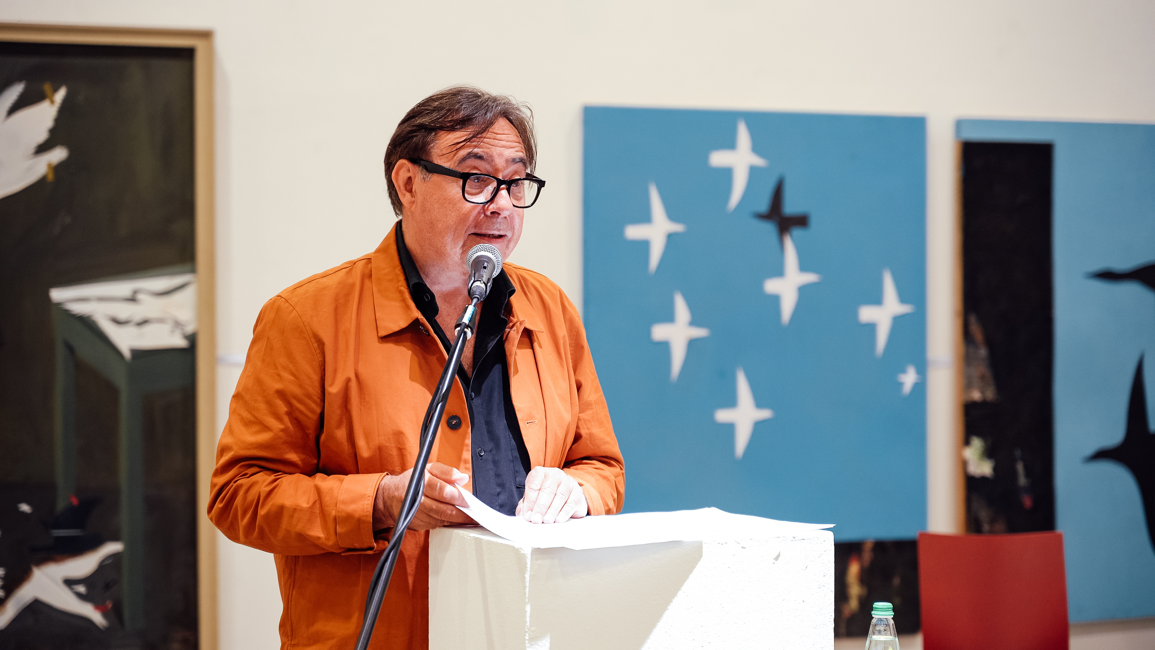 Roland Lambrette, Rektor der HfK Bremen, würdigt Jürgen Wallers Pionierrolle für HfK und Bremer Kulturlandschaft