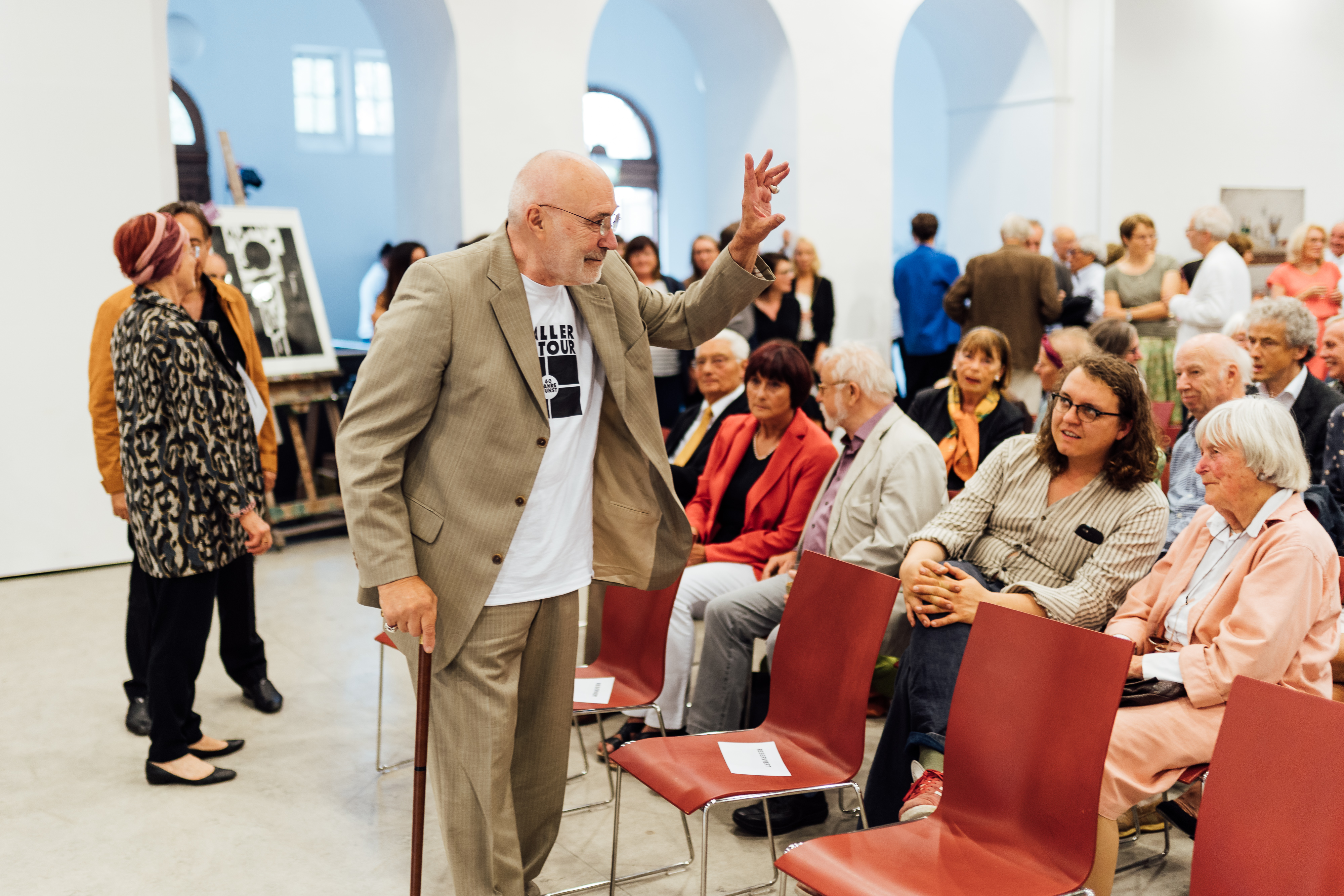 Anlässlich der Ausstellungseröffnung „80 Jahre Jürgen Waller // 60 Jahre Kunst“ in der Galerie der Hochschule für Künste Bremen beschrieb HfK-Rektor Lambrette die Rolle des Jubilars für die Entwicklung der Hochschule. Die Eröffnung war die Auftaktveranstaltung von gleich vier Ausstellungen in der Galerie der HfK Bremen, der Kunsthalle Bremen, der Weserburg Museum für moderne Kunst sowie der Galerie Birgit Waller in Lesum. Neben Lambrette sprachen Janneke de Vries, Direktorin der Weserburg Museum für moderne Kunst, und Prof. Dr. Grunenberg, Direktor der Kunsthalle Bremen.