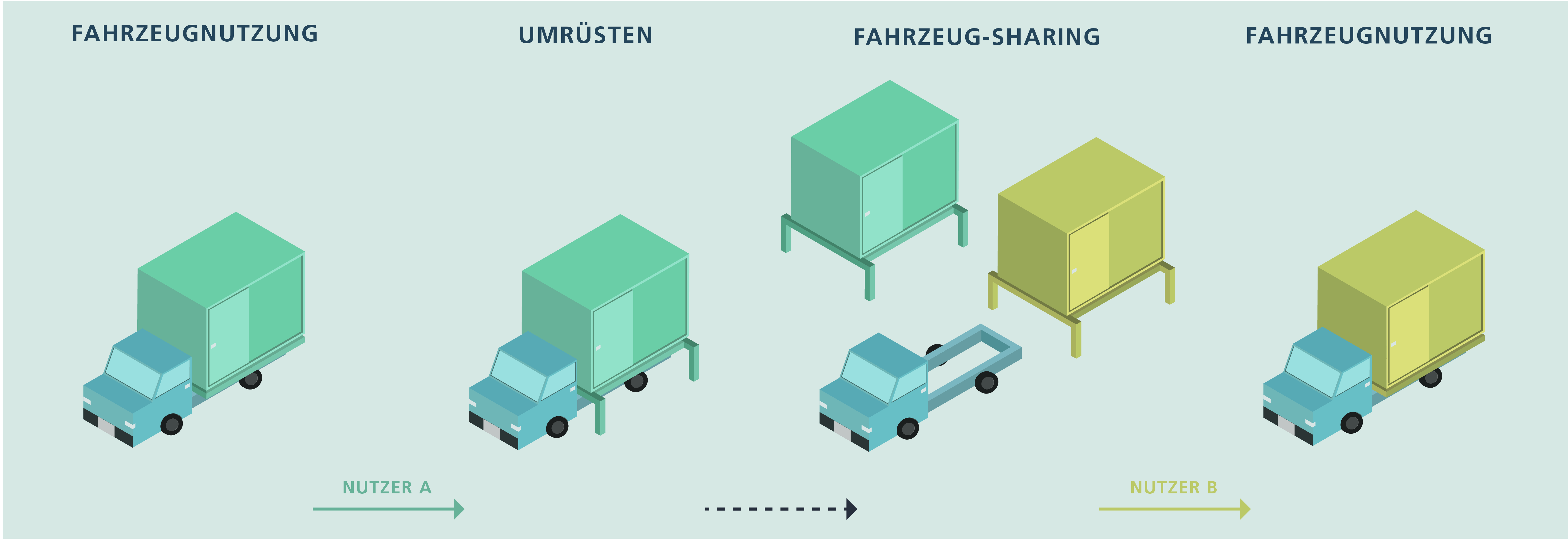 Das Projektkonsortium geht sogar noch einen Schritt weiter: Der modulare Baukasten bietet die Chance, dass sich mehrere Unternehmen eine Flotte im Sinne des Car-Sharing-Prinzips teilen können. So lassen sich hohe Investitionskosten für das einzelne Unternehmen deutlich senken, die Standzeiten der Fahrzeuge verringern sich und es wird insgesamt weniger Parkraum für das Abstellen nicht genutzter Fahrzeuge gebraucht.