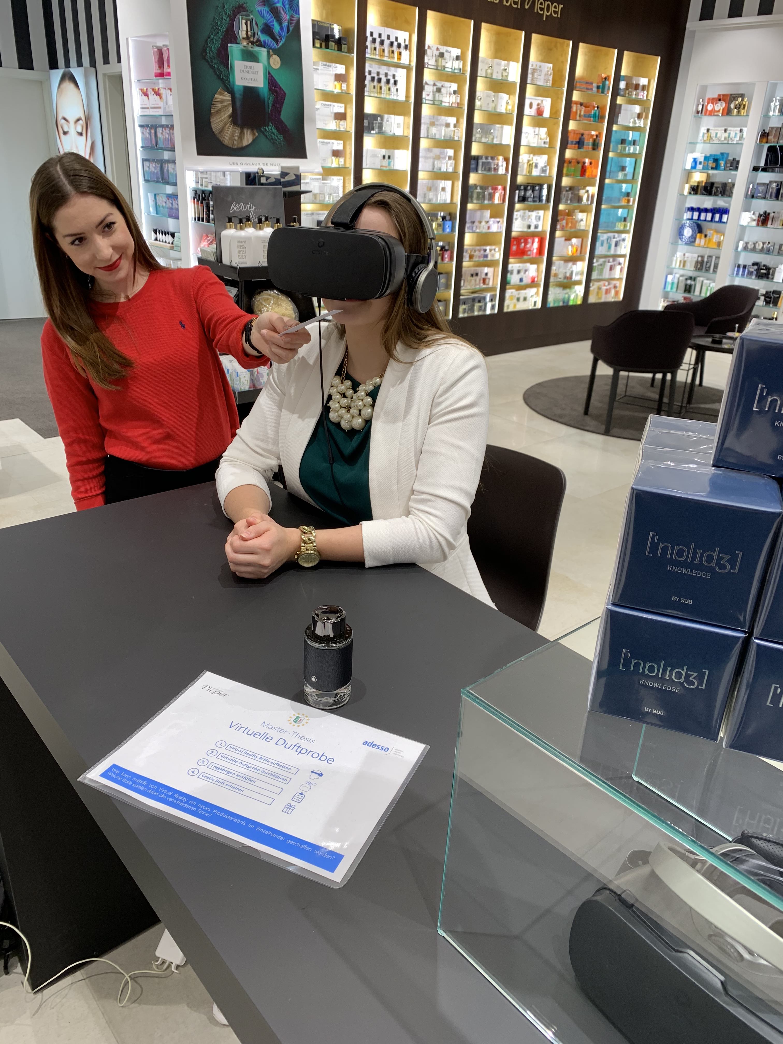 Über einen Zeitraum von vier Wochen wurde an 100 Probanden ein Parfüm getestet. Sowohl klassisch durch den reinen Geruchssinn, als auch in einer virtuellen Umgebung durch eine VR-Brille. Das Ergebnis der Studie ergab, dass der Duft intensiver wahrgenommen, besser bewertet und die Kaufbereitschaft gesteigert wurde. Die Studie wurde in Kooperation mit der adesso AG durchgeführt.