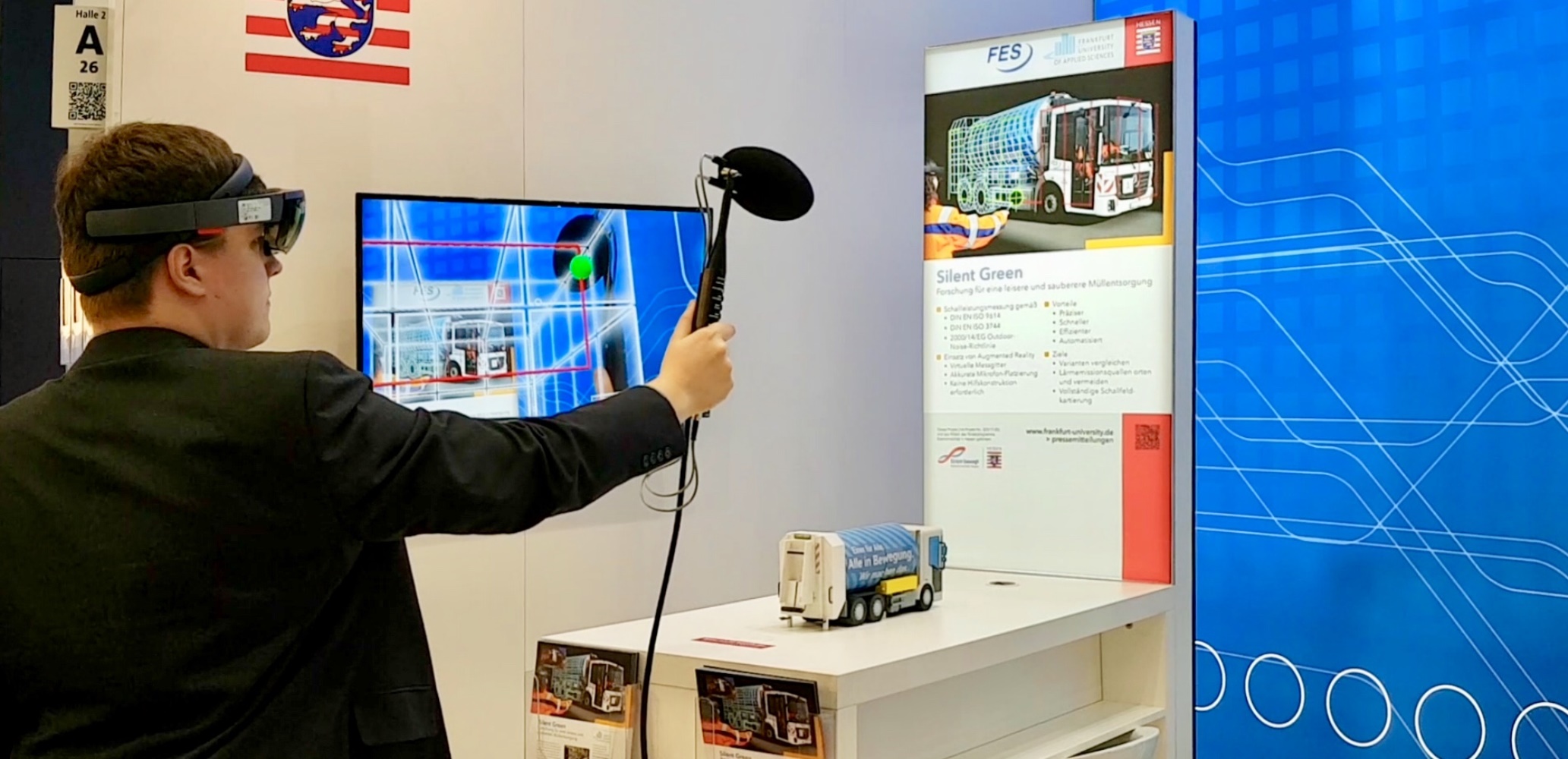 In vielen Städten hat die Lärmbelastung heutzutage ein Ausmaß angenommen, das immer wieder zu Beschwerden und Rechtsstreitigkeiten führt. Dabei sind die Lärmquellen recht vielfältig, und ihr Zusammenwirken in Verbindung mit den Umgebungseinflüssen macht es oft unmöglich, einzelne „Schuldige“ auszudeuten. Das liegt vor allem daran, dass die vollständige messtechnische Kartierung von Schallfeldern, durch die bspw. Geräuschquellen aufgespürt werden können, aufgrund ihres hohen Aufwands nicht üblich ist. Im Forschungsprojekt „Augmented Reality Acoustics – Dreidimensionale Erfassung von Schallfeldern mit Hilfe von Mixed-Reality“ soll nun erforscht werden, inwiefern Mixed Reality-Brillen bei der Ortung sowie der Visualisierung von akustischen Feldern unterstützen können. Es wird von Forschenden um Prof. Holger Marschner von der Frankfurt University of Applied Sciences (Frankfurt UAS) durchgeführt. Das Projekt wird finanziert aus dem Förderprogramm „Forschung für die Praxis“ des Hessischen Ministeriums für Wissenschaft und Kunst (HMWK). Es wird über einen Zeitraum von 12 Monaten mit einer Summe von 35.000 Euro gefördert.