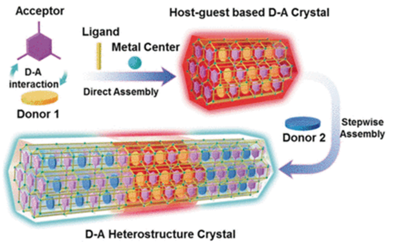 Erfolgsgeheimnis des Teams um Ze Chang und Xian-He Bu sind gezielt konstruierte metallorganische Gerüstverbindungen (metal-organic frameworks, MOFs), gitterartige Strukturen aus metallischen „Knotenpunkten“, die über organische Liganden verbrückt sind und in ihren käfigartigen Hohlräumen andere Moleküle als „Gäste“ einschließen können, wenn diese während der Kristallisation zugegeben werden. Die Gäste und ein Teil der in das Gitter integrierten Liganden sind dabei so aufeinander abgestimmt, dass die Gäste Elektronen auf diese Liganden-Moleküle übertragen („charge transfer“). Solche Systeme neigen zum Fluoreszieren. Die Farbe der Fluoreszenz hängt bei gegebenem MOF von der Art der Gastspezies ab.
