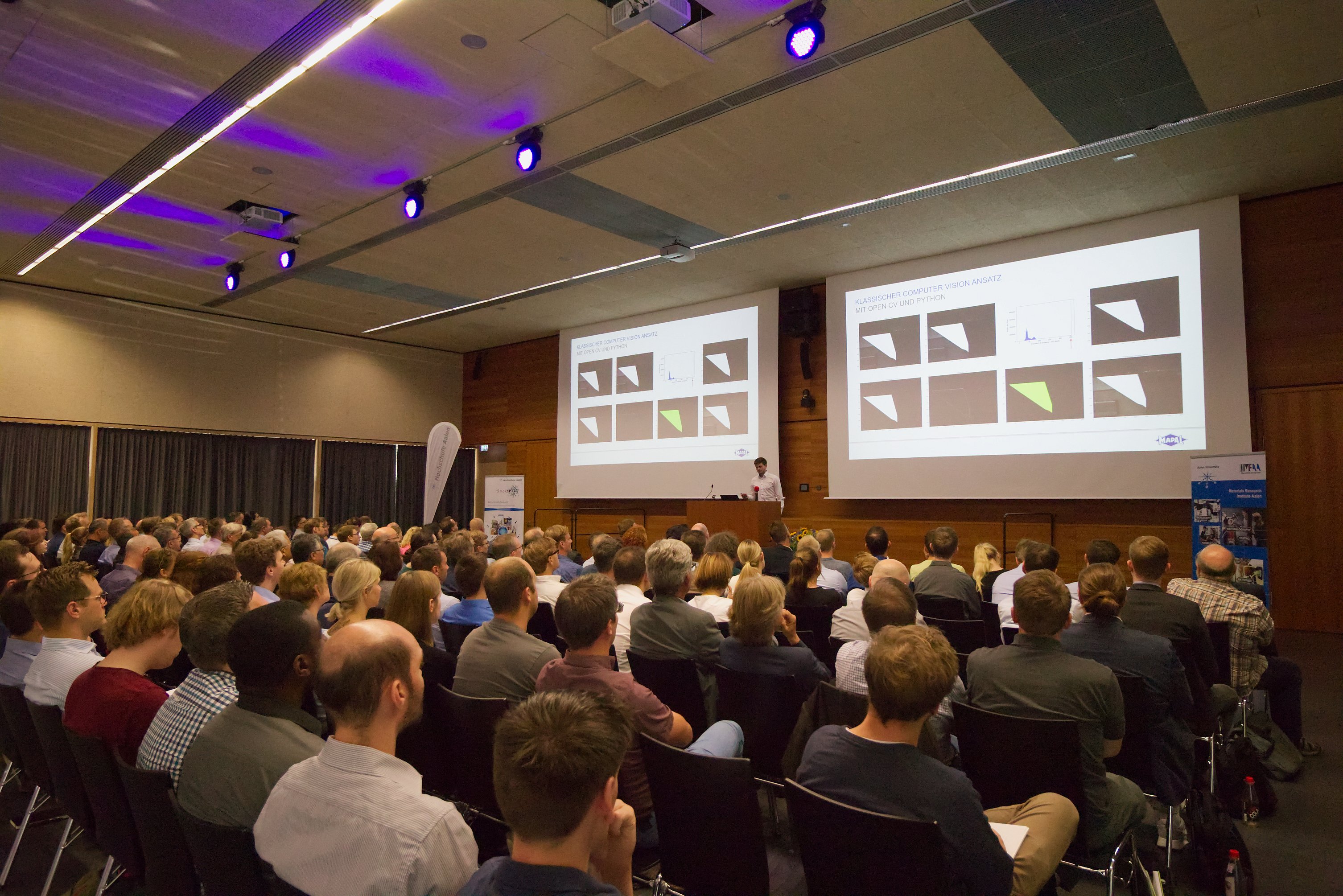 Rund 160 Teilnehmende folgten der Einladung des Instituts für Materialforschung (IMFAA) und besuchten den 3. Aalener Materialmikroskopietag in der Aula der Hochschule Aalen. Die Vorträge rund um das Motto „Machine Learning und Künstliche Intelligenz für die Materialmikroskopie“ boten neue Einsichten, Praxisberichte und viel Stoff und Anregungen für Ideen und Diskussionen.