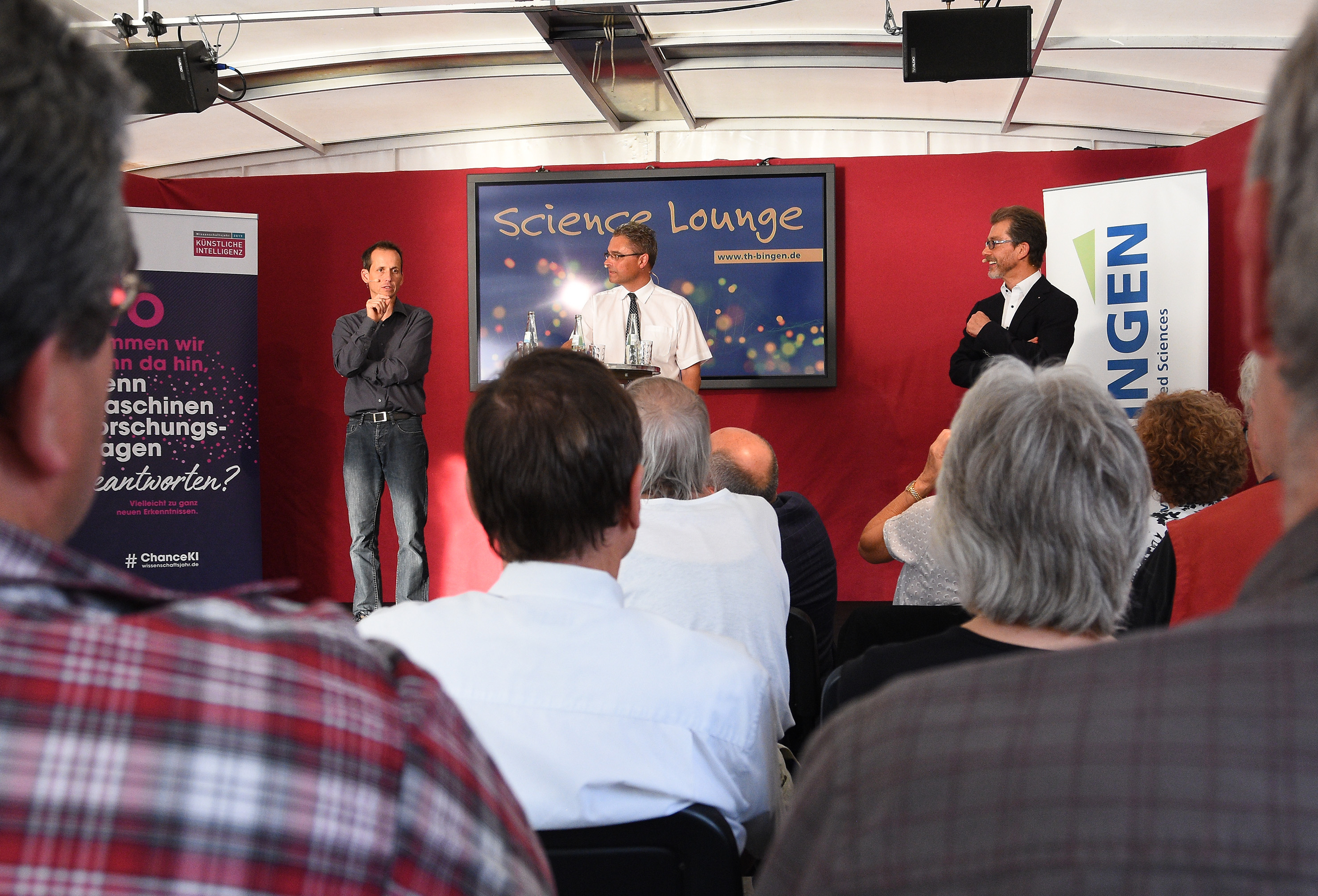 Dass die neuen Technologien noch viele Fragen aufwerfen, zeigte die Diskussionsbereitschaft der Bingerinnen und Bingern an diesem Abend. So wollten sie von den Experten wissen: Bereiten Roboter, die weniger menschlich aussehen, weniger Angst? Kann ich KI bei medizinischen Diagnosen vertrauen? Sind selbstfahrende Autos gefährlich? Marx sagte: „Auch KI macht Fehler. Aber die Frage ist, ob es ohne die Technologie nicht schlechter ist.“ An der TH Bingen wird zum Thema weiter geforscht. So wird zum Wintersemester eine Gastprofessur eingerichtet, die sich mit dem Schwerpunkt künstliche Intelligenz befasst. Damit wird die Digitalisierung noch stärker in allen Studiengängen verankert.