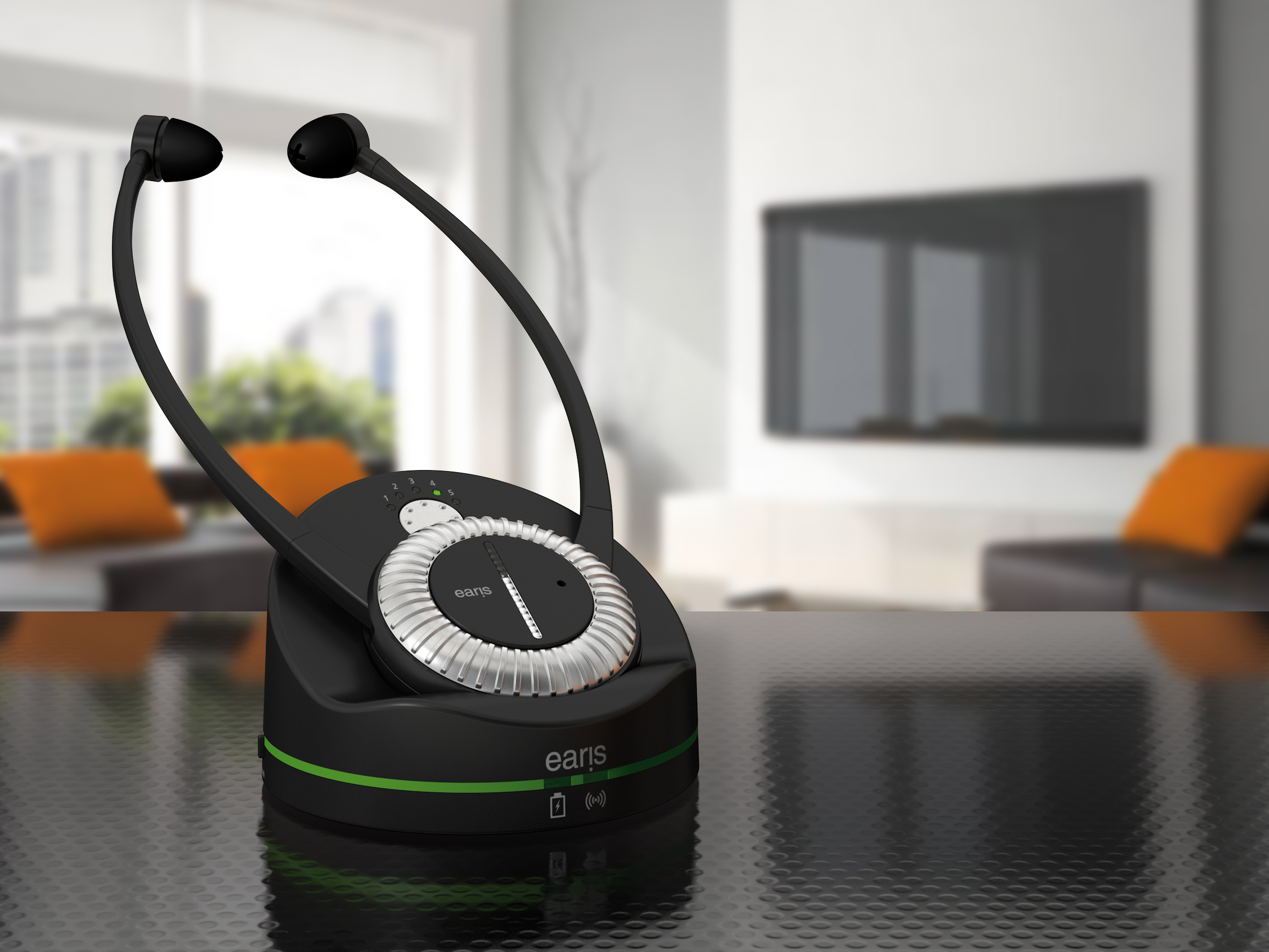 Unter dem Namen »earis®« stellt das Unternehmen Humantechnik GmbH derzeit ein in der Zusammenarbeit mit dem Fraunhofer IDMT in Oldenburg entwickeltes TV-Hörsystem vor. Dabei handelt es sich um einen Kinnbügel-Kopfhörer und einen Pocket-Empfänger, der auch mit anderen Kopfhörern genutzt werden kann.