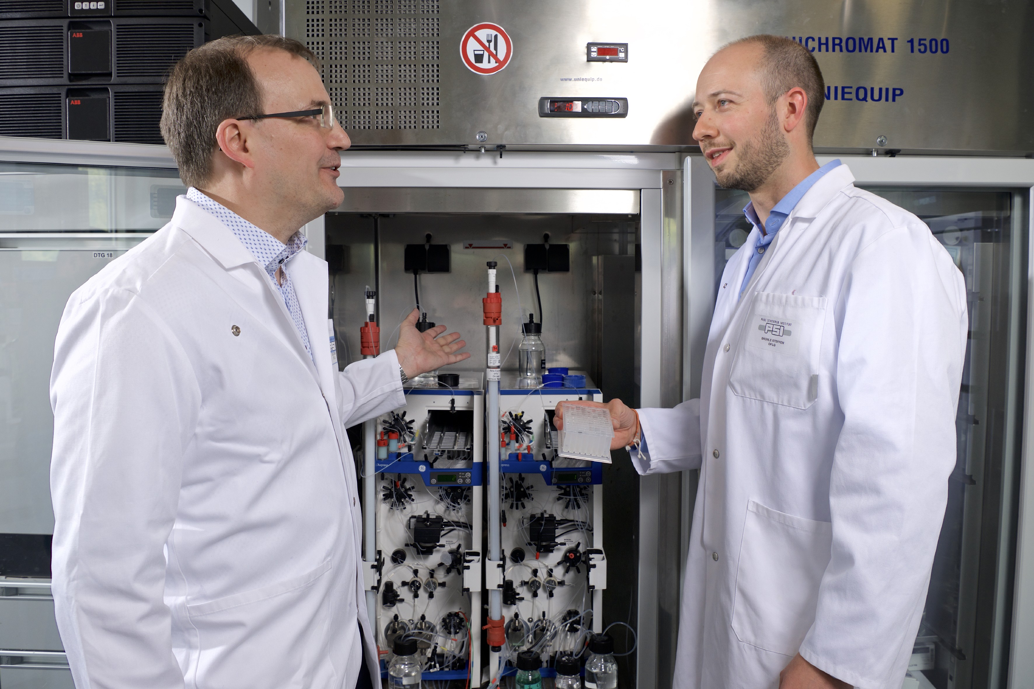 Um die Überlebensrate von Krebspatienten zu erhöhen, ist es von grossem medizinischem Interesse den Prozess der Metastasierung zu unterbinden. PSI-Forschende haben deshalb mithilfe von Röntgenkristallografie an der Synchrotron Lichtquelle Schweiz SLS am PSI die Struktur des CCR7-Rezeptors entschlüsselt. Diese Struktur diente in einer Zusammenarbeit mit Roche als Grundlage für die Suche nach entsprechenden Wirkstoffen. «Das passende Molekül kann verhindern, dass das Signalprotein an den Rezeptor koppelt und in der Zelle zu einer Reaktion führt», erklärt Steffen Brünle, der als PSI-FELLOW-II-3i und einer der beiden Erstautoren die Studie durchführte. Die Struktur des Rezeptors zu entschlüsseln war eine echte Herausforderung. «Das Schwierige daran war, die Proteine überhaupt so herzustellen, dass wir sie röntgenkristallografisch untersuchen konnten», so Jörg Standfuss, Co-Leiter des Projekts und der Arbeitsgruppe Zeitaufgelöste Kristallografie am PSI. Um den Untersuchungsprozess zu beschleunigen entwickelte Roche eigens neue proteinverändernde Technologiebausteine, sogenannte Kristallisations-Chaperone.