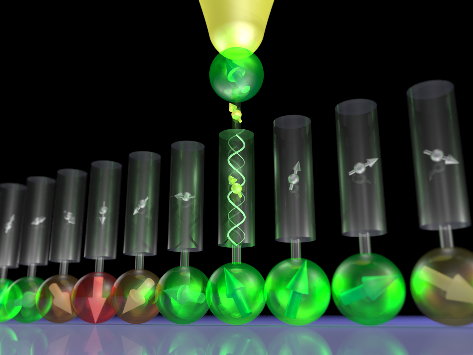 They placed an atomically sharp magnetic probe tip in front of a magnetic sample surface, thereby realizing a one-dimensional trap for electrons in the gap. Only when resonance conditions in terms of electron energy and spin are fulfilled, standing wave states evolve in the trap, and injection of spin-polarized electrons into these states allows for the investigation of single electron reflection at the underlying atom at the surface. Providing unprecedented insights into the atomic-scale scattering mechanism, the study potentially paves the way towards future spintronic devices employing spin-dependent electron scattering and transport.