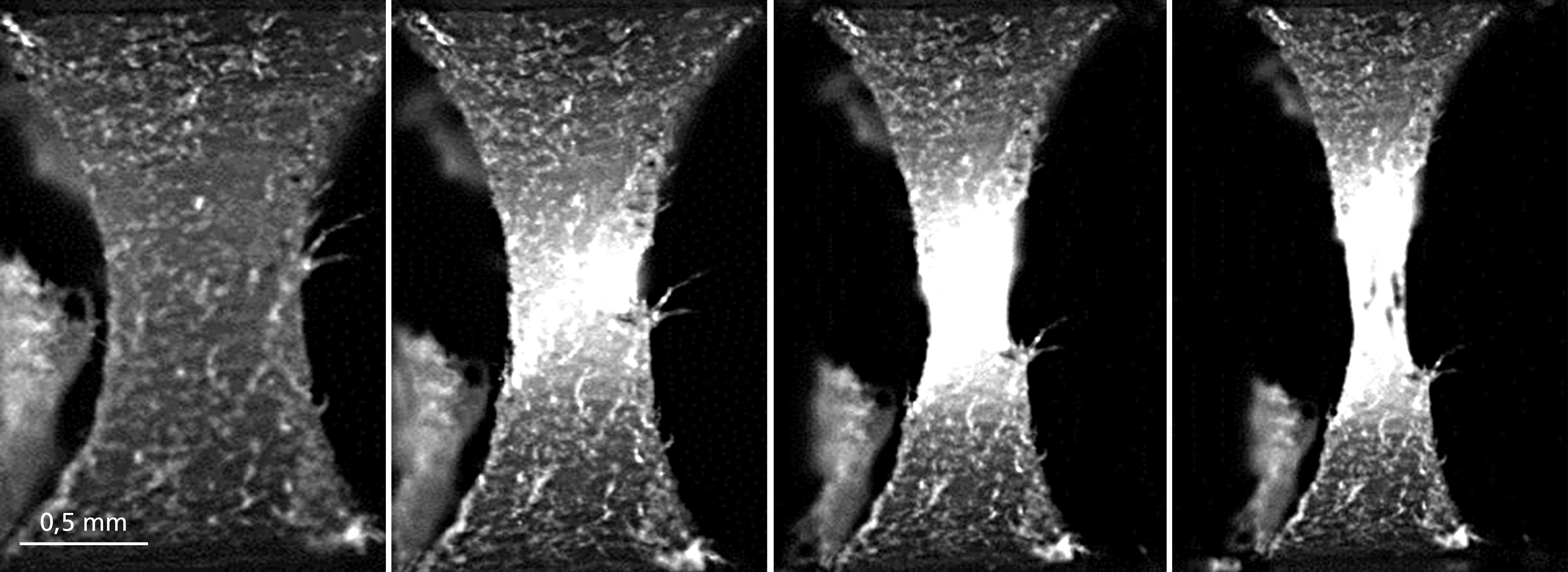 »Im Projekt SusCOMP forschten wir an sortenreinen Kompositen aus PE, die sich im Spritzguss verarbeiten lassen und dabei direkt selbst verstärken – besonders interessierten uns dabei natürlich, welche mechanischen Eigenschaften diese Komposite erreichen«, erklärt Raimund Jaeger, Gruppenleiter »Polymertribologie und biomedizinische Materialien« am Freiburger Fraunhofer-Institut für Werkstoffmechanik IWM. »Die Firma DSM spinnt zwar bereits Hochleistungsfasern aus langen UHMWPE-Molekülketten, die sich entlang der Faserrichtung orientieren, sogenannte Dyneemafasern.« Solche Fasern als Verstärkung in PE einzubringen wäre technisch möglich, sei aber mit einem hohen Arbeits- und Kostenaufwand verbunden und für das Werkstoffrecycling ungeeignet.