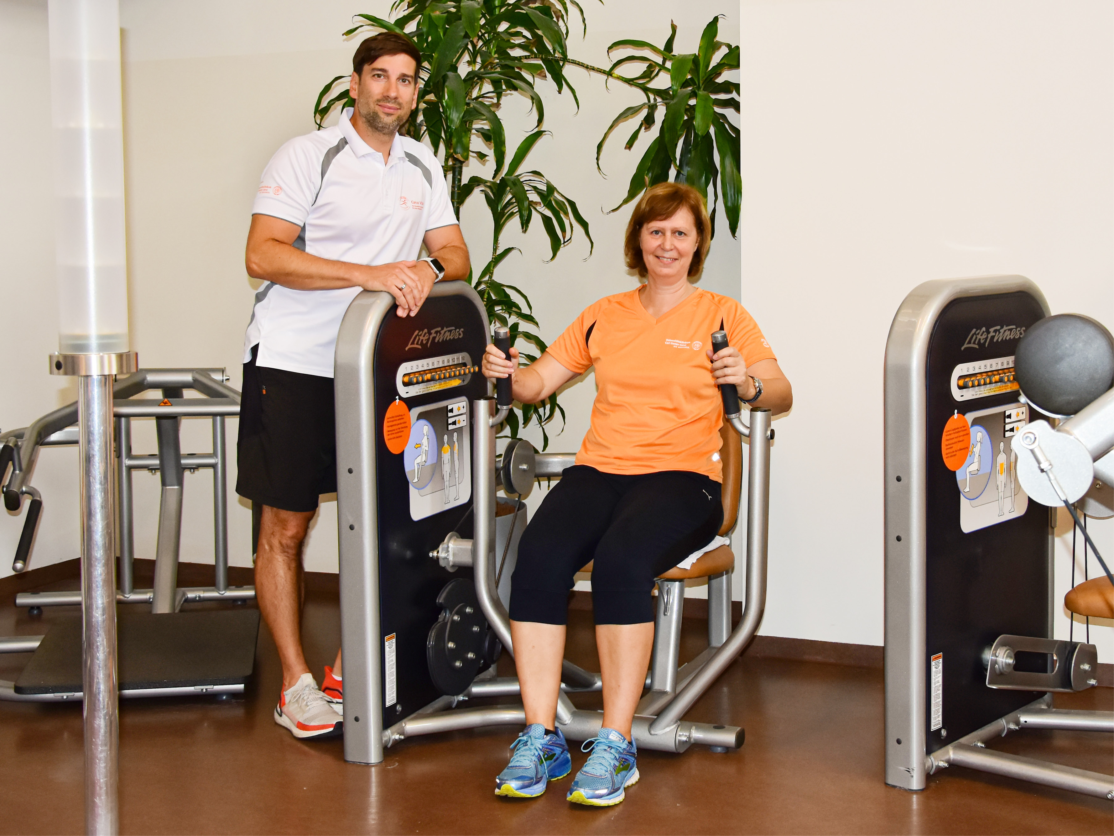 Das gefällt auch Viola Schneider an dem Angebot. Die 56-Jährige arbeitet als Physiotherapeutin im Physiotherapiezentrum des Klinikums und ist seit 2009 Mitglied im Carus Vital. Das Training ist für sie Ausgleich für die körperlich anstrengende Arbeit mit den teils schwerstkranken Patienten. „Durch den Sport habe ich mehr Stabilität in beiden Kniegelenken und weniger Rückenschmerzen“, sagt sie. Ein bis zwei Mal pro Woche trainiert Viola Schneider an den Herz-Kreislauf- und Kraftgeräten. „Das gemeinsame Training mit den Kollegen macht Spaß und ich kann meinen Sport flexibel einplanen“, sagt sie. Auch Heike Vogelbusch trainiert zwei Mal pro Woche im Carus Vital. Die Mitarbeiterin in der Verwaltung des Uniklinikums ist ebenfalls seit 2009 dabei. „Ich habe inzwischen schon viel probiert und auch mitgemacht, vom Yoga über Bauch-Beine-Po bis zum Kraftkreistraining. Inzwischen bin ich nur noch beim „SYNRGY“, das aber konsequent und mit ganz viel Spaß“, sagt sie. Beim SYNRGY ändern sich alle zwei Monate die Übungsinhalte, wodurch ein abwechslungsreiches funktionelles Ganzkörpertraining möglich wird. Trainiert wird in der Gruppe, was die Motivation der Teilnehmer stärkt. „Carus Vital unterstützt mich, fit und gesund zu bleiben“, sagt sie. „Ich habe den Sport vor der Tür, muss nicht von zu Hause erneut starten, und kann die Angebote zu einer unverändert niedrigen Gebühr nutzen.“