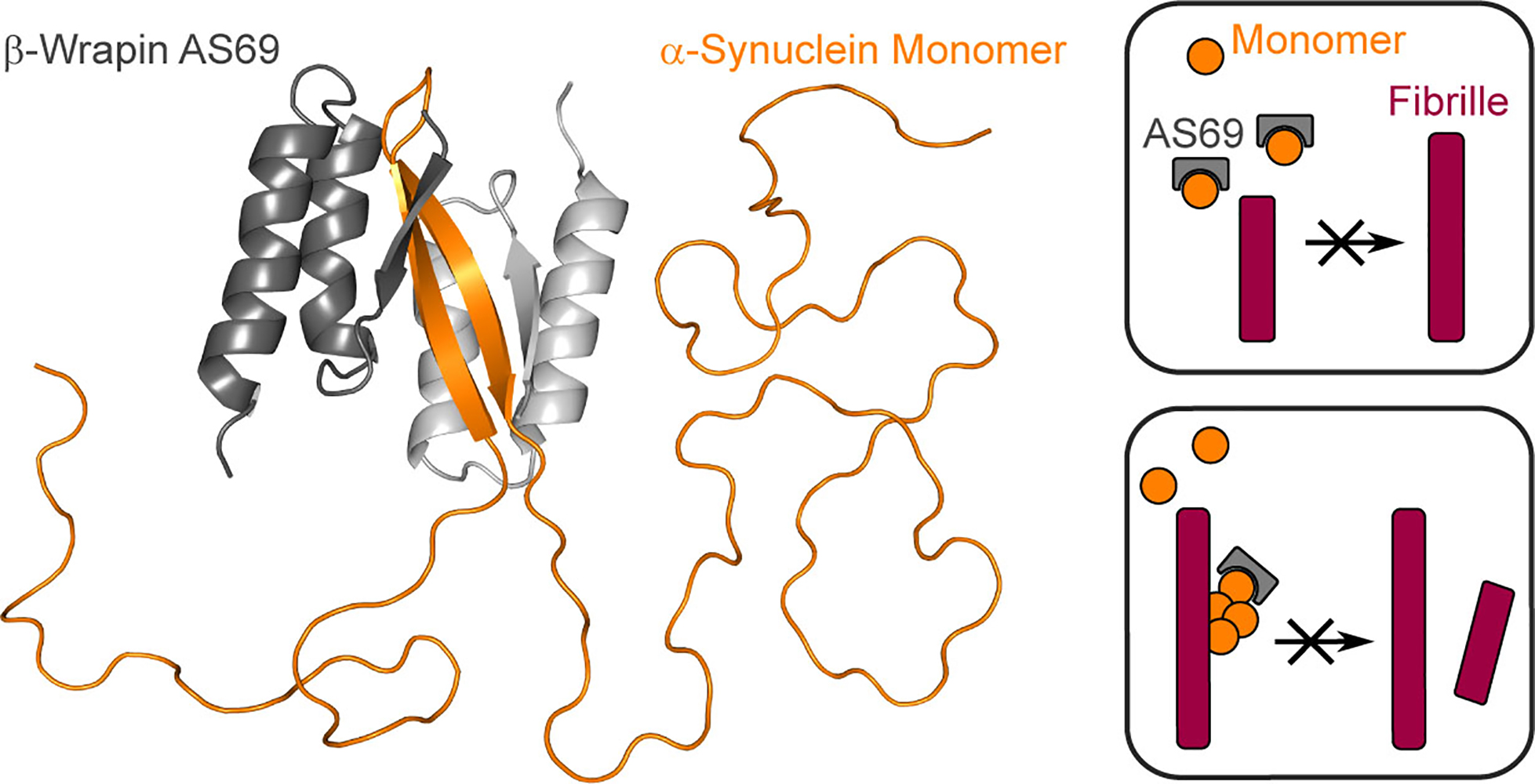 Sie fanden heraus, dass die β-Wrapine zum einen die Verlängerung der Amyloidfibrillen um weitere Bausteine verhindern. Dazu fangen die β-Wrapine die Monomere ab und bilden mit ihnen chemische Komplexe.