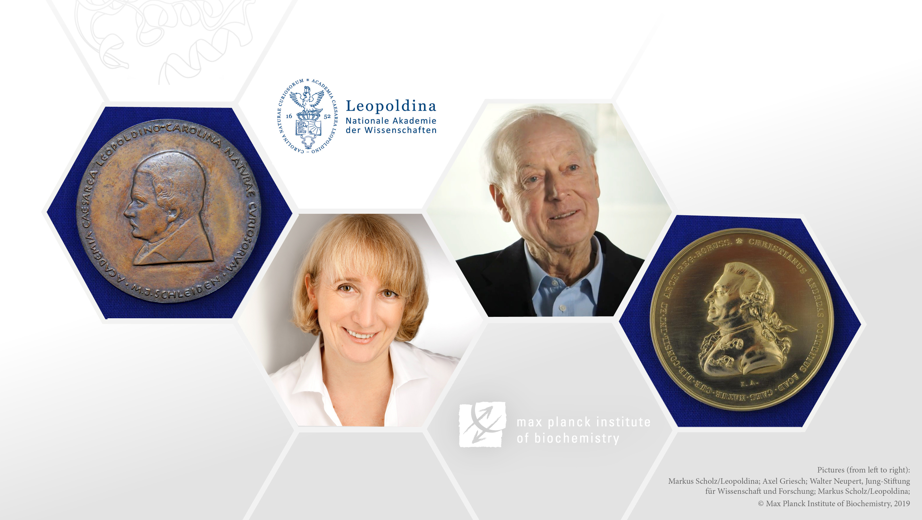 Die Nationale Akademie der Wissenschaften Leopoldina würdigt seit 1652 wissenschaftliche Leistungen und wählt hervorragende Wissenschaftlerinnen und Wissenschaftler zu ihren Mitgliedern. Die Akademie ehrt nun zwei ihrer Mitglieder und Forscher am Max-Planck-Institut für Biochemie (MPIB) mit besonderen Auszeichnungen. Max-Planck-Fellow Walter Neupert erhält posthum die Cothenius-Medaille für sein wissenschaftliches Lebenswerk und Elena Conti, Direktorin am MPIB, die Schleiden-Medaille für herausragende wissenschaftliche Arbeiten auf dem Gebiet der Zellforschung. Die Medaillen werden bei der feierlichen Eröffnung der Jahresversammlung am 20. September 2019, in Halle (Saale) überreicht.