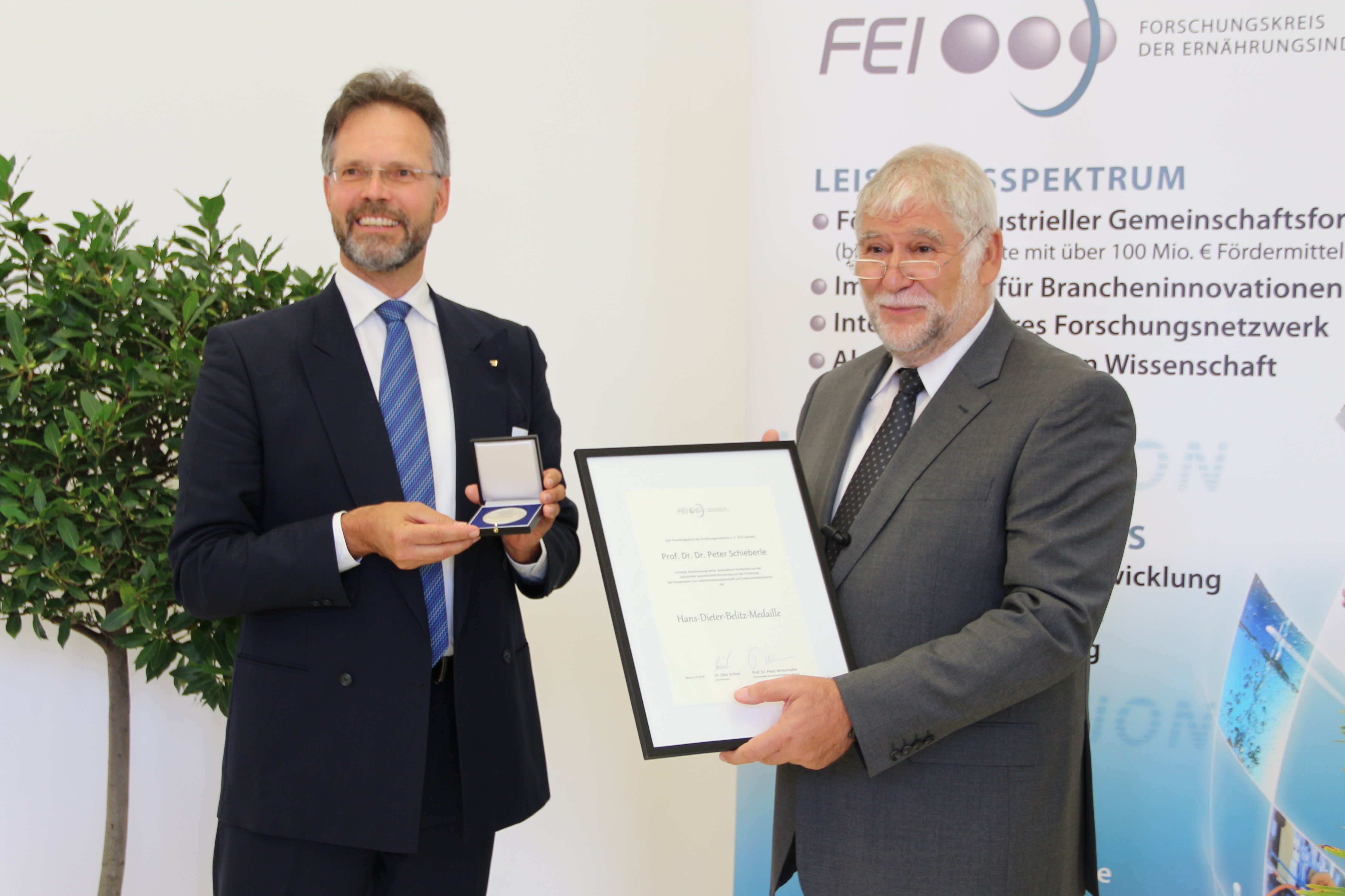 In Anerkennung seiner besonderen Verdienste um die Industrielle Gemeinschaftsforschung (IGF) und die Förderung der Kooperation von Lebensmittelwissenschaft und Lebensmittelindustrie wurde Prof. Dr. Dr. Peter Schieberle heute mit der Hans-Dieter-Belitz-Medaille ausgezeichnet. Die Verleihung fand im Rahmen der Jahrestagung des Forschungskreises der Ernährungsindustrie e.V. (FEI) in Gießen statt. Mit der Hans-Dieter-Belitz-Medaille würdigt der FEI seit 2002 besondere Verdienste um die Förderung der IGF sowie beispielhaftes Engagement im Netzwerk des FEI.