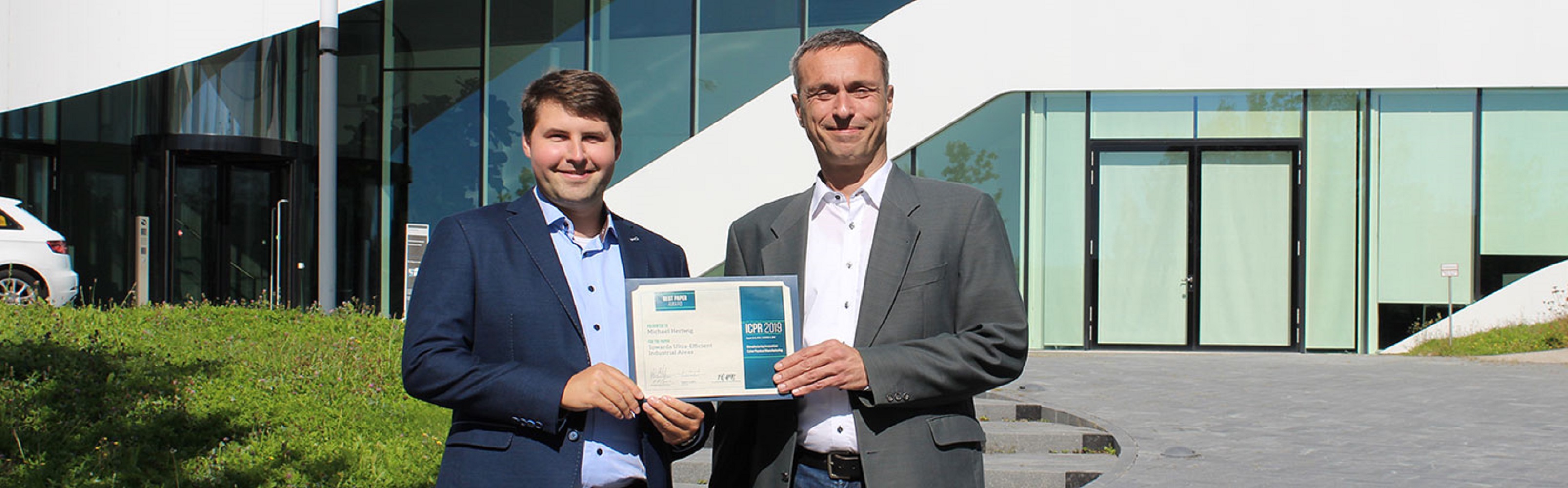 Alle zwei Jahre treffen sich Wissenschaftlerinnen und Wissenschaftler verschiedener Institutionen zur »International Conference on Production and Research«, um ihre aktuellen Arbeiten vorzustellen und sich auszutauschen. Die Forschenden präsentieren ihre Theorien, Methoden und Werkzeuge, die es produzierenden Unternehmen ermöglichen, die wachsende Komplexität von Design und Betrieb von Fertigungssystemen zu bewältigen. Im August 2019 wurde im Rahmen der Konferenz der »Best Paper Award« für den besten Konferenzbeitrag verliehen. Der Preis ging dieses Mal an zwei Forscher des Fraunhofer-Instituts für Arbeitswirtschaft und Organisation IAO für ihren Beitrag »Towards Ultra-Efficient Industrial Areas«.