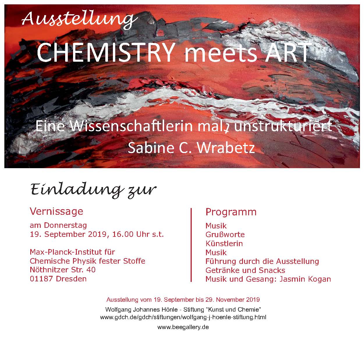 Die Wolfgang Johannes Hönle - Stiftung für „Kunst und Chemie“ ermöglicht in diesem Monat die Eröffnung einer neuen Kunstausstellung mit Werken von Sabine Wrabetz am MPI CPfS in Dresden.