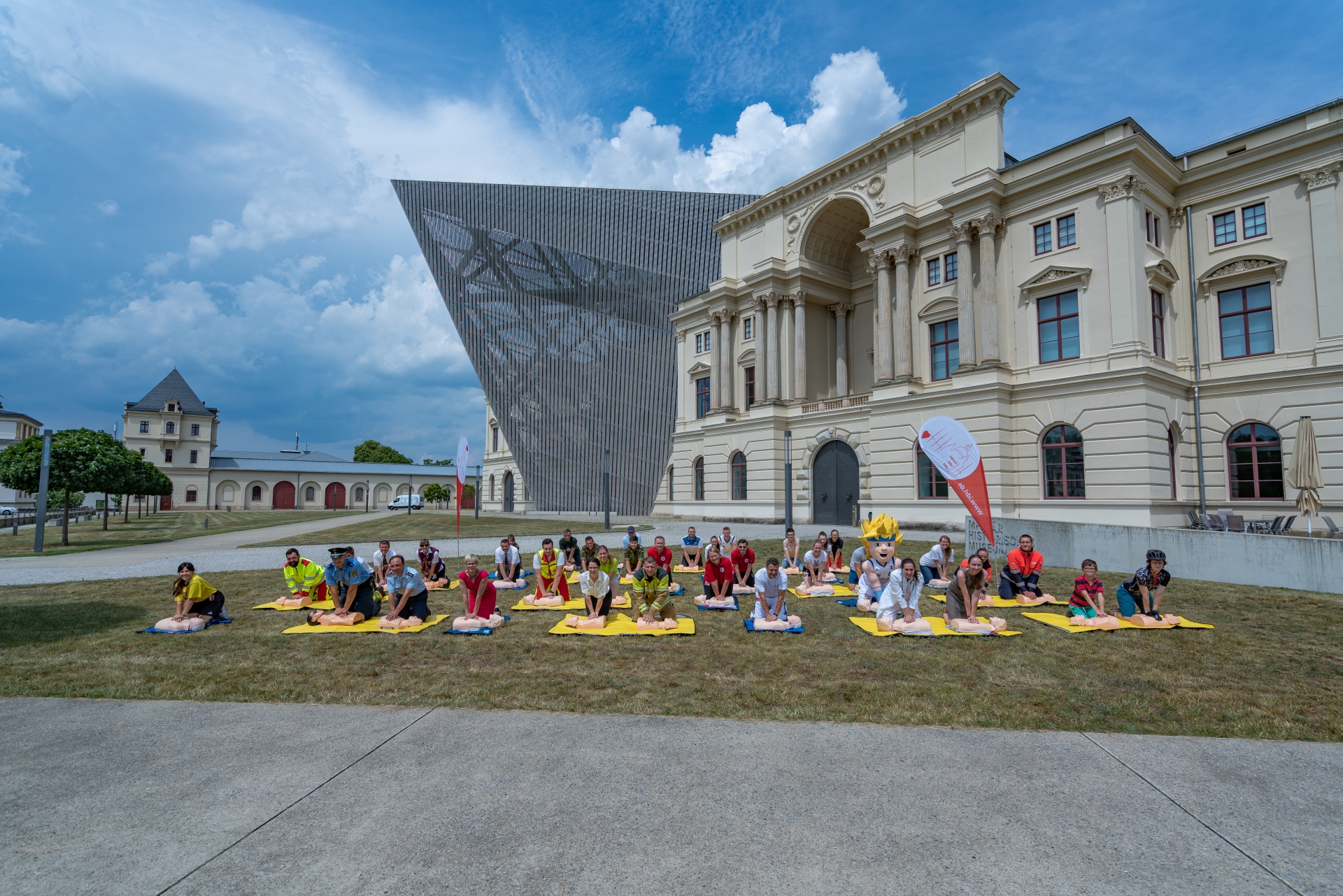 Mit öffentlichen Schulungen im Residenzschloss und im Deutschen Hygienemuseum Dresden sowie einem Kinderreanimationstag in der Centrum Galerie beteiligen sich in der kommenden Woche das Universitätsklinikum Carl Gustav Carus Dresden, DRK Kreisverband Dresden e.V., Johanniter-Unfall-Hilfe e.V. Regionalverband Dresden, der Malteser Hilfsdienst e.V. sowie die Arbeitsgemeinschaft für Erste Hilfe und Notfallkunde der Medizinstudenten e.V. an der diesjährigen „Woche der Wiederbelebung“. Unter dem Motto „Ein Leben retten. 100 Pro Reanimation“ engagieren sich Fachkräfte der Rettungsdienste sowie Ärzte dafür, dass mehr Menschen den Mut haben, im Notfall eines Herzstillstands Erste Hilfe zu leisten.