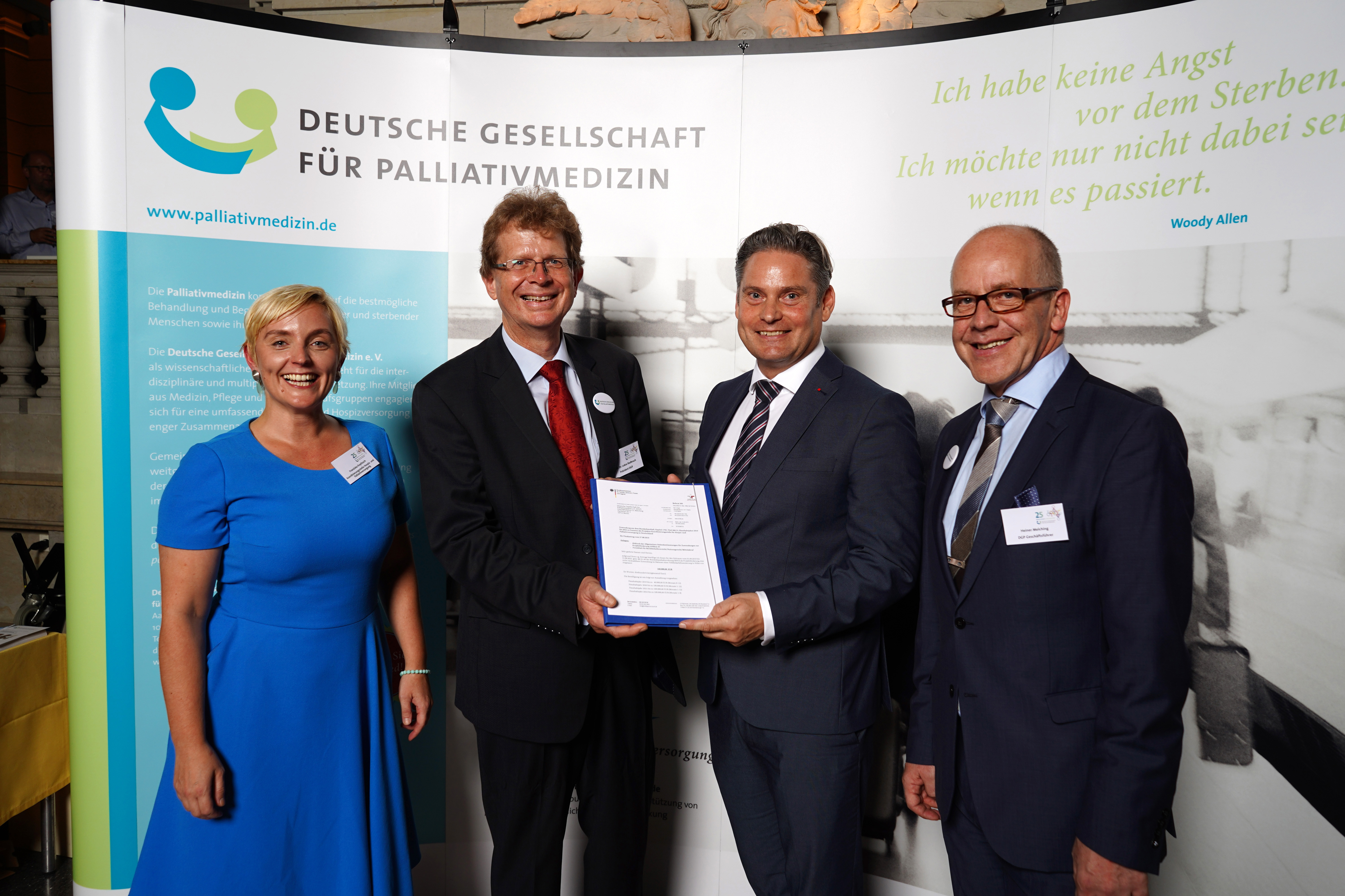„25 Jahre und kein bisschen leise“ – unter diesem Motto feierten rund 200 Gäste im Berliner Museum für Kommunikation die dynamische Entwicklung der wissenschaftlichen Fachgesellschaft: Am 2. Juli 1994 von 14 Personen in Köln gegründet, zählt die DGP heute über 6.000 Mitglieder aus Medizin, Pflege und weiteren an der Palliativversorgung beteiligten Berufsgruppen und setzt sich an diversen Schnittstellen dafür ein, schwerkranken und sterbenden Menschen unabhängig von ihrer Grunderkrankung, ihrem Alter und ihren Lebensumständen den Zugang zu einer qualitativ hochwertigen Palliativ- und Hospizversorgung zu öffnen.