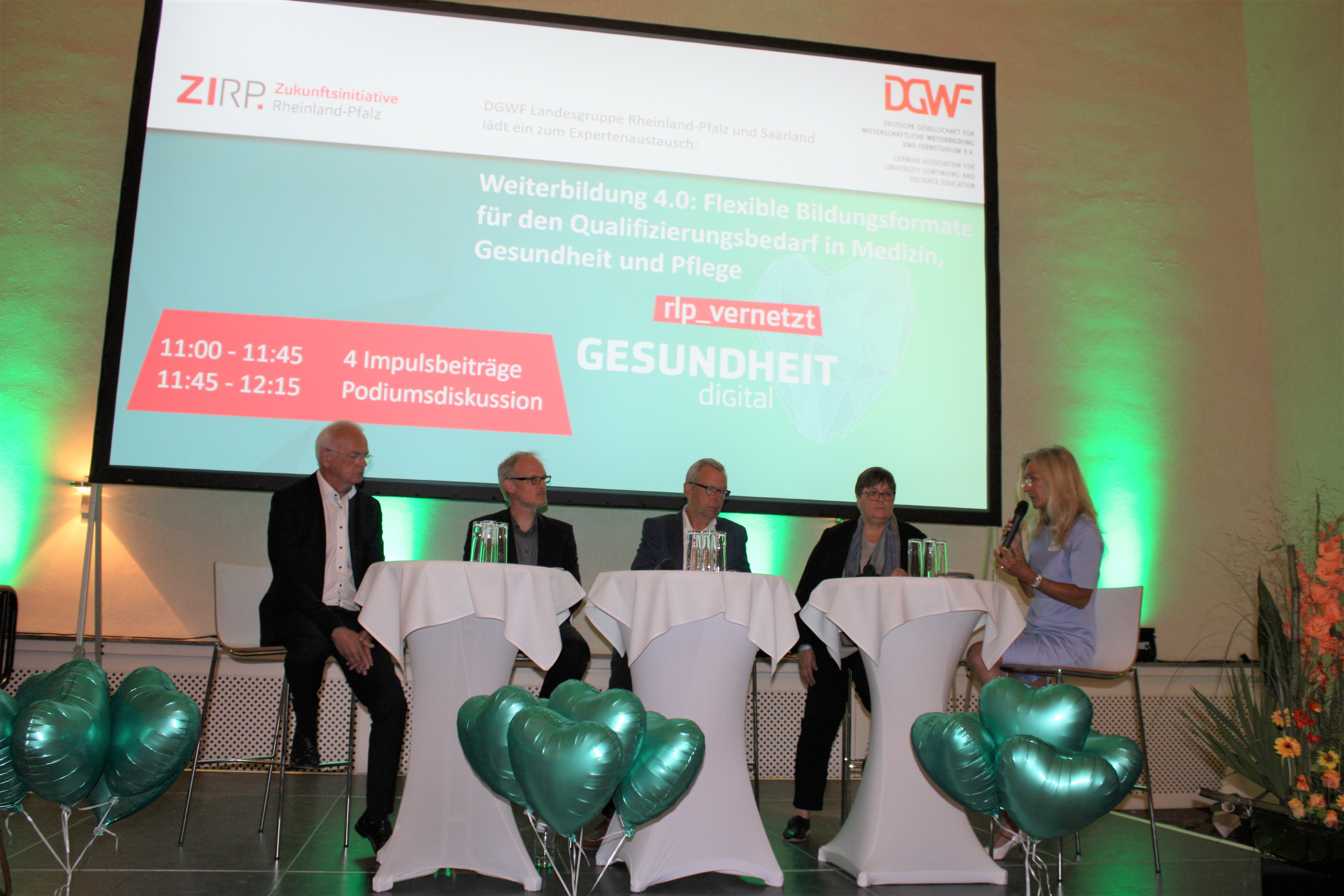 Koblenz. Wie sich der digitale Wandel auf die Gesundheitswirtschaft auswirkt, darüber wurde am 3. und 4. September 2019 auf dem ZIRP Zukunftskongress Gesundheit diGital in Koblenz diskutiert. Die Landesgruppe Rheinland-Pfalz und Saarland in der DGWF (Deutsche Gesellschaft für Wissenschaftliche Weiterbildung und Fernstudium e.V.) fokussierte hierbei den Qualifizierungsbedarf, um den „Digital Turn“ im Gesundheits- und Pflegesektor erfolgreich umzusetzen. Dazu hatte die DGWF-Landesgruppe Experten aus Hochschulen und Praxis eingeladen, die mit Impulsbeiträgen unterschiedliche Perspektiven näher beleuchteten. In der anschließenden Podiumsdiskussion reflektierte die Runde unter Moderation von Dr. Margot Klinkner vom zfh – Zentrum für Fernstudien im Hochschulverbund und Vorsitzende der Landesgruppe zusammen mit Dr. Burkhard Lehmann vom Vorstand der DGWF über Herausforderungen und Chancen der Digitalisierung in der Weiterbildung für die Gesundheitsbranche.