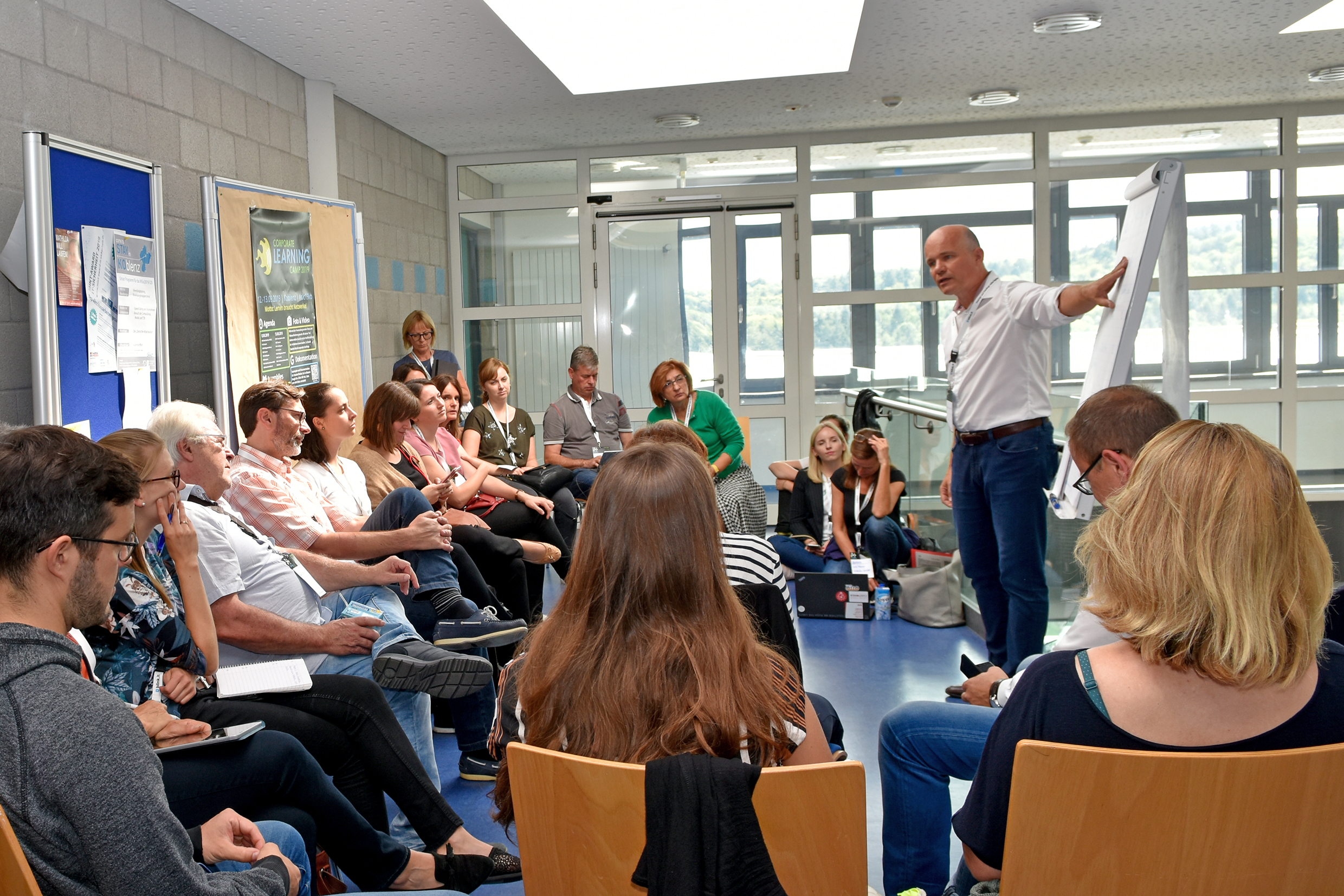 Das Corporate Learning Camp richtete sich an alle, die sich in Unternehmen damit befassen, neue Entwicklungen und Lernen anzuregen und zu gestalten. Viele Unternehmen der Region nutzten die Gelegenheit, sich an den beiden Tagen intensiv mit den verschiedenen Aspekten und Möglichkeiten des Lernens auseinander zu setzen. Dabei trafen einige auf ein bekanntes Gesicht. Prof. Dr. Siegfried Schreuder, Leiter des Kompetenzzentrums Wissensmanagement der Hochschule Koblenz, bot selbst eine Session an, in der er von in kleinen und mittelständischen Unternehmen bereits erfolgreich durchgeführten Projekten berichtete. „Netzwerke sind auch in diesem Fall ein Schlüssel bei der Entwicklung innovativer Lösungen, unter anderem zur Bewahrung von relevantem Firmenwissen“, so Schreuder.