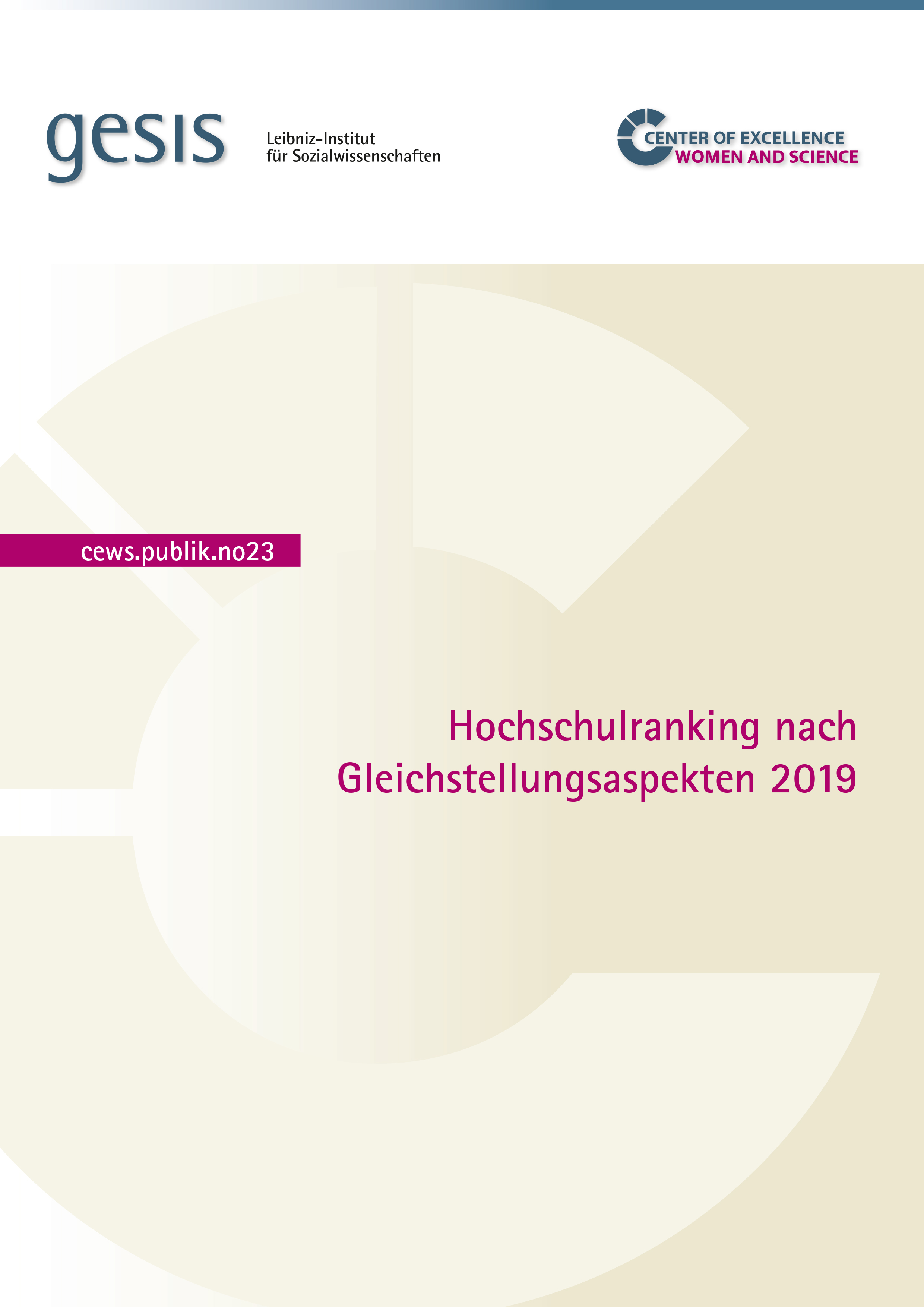Mit dem Hochschulranking nach Gleichstellungsaspekten 2019 legt das Team CEWS (Kompetenzzentrum Frauen in Wissenschaft und Forschung) von GESIS – Leibniz-Institut für Sozialwissenschaften und die neunte Ausgabe dieses Instruments vor. Seit seiner Erarbeitung im Jahr 2003 hat sich das Ranking als ein Bestandteil der Qualitätssicherung für Gleichstellung an Hochschulen etabliert. Zielstellung des Ranking ist es, die Leistungen der Hochschulen bei der Gleichstellung von Frauen und Männern mit Hilfe quantitativer Indikatoren kontinuierlich und bundesweit zu vergleichen.