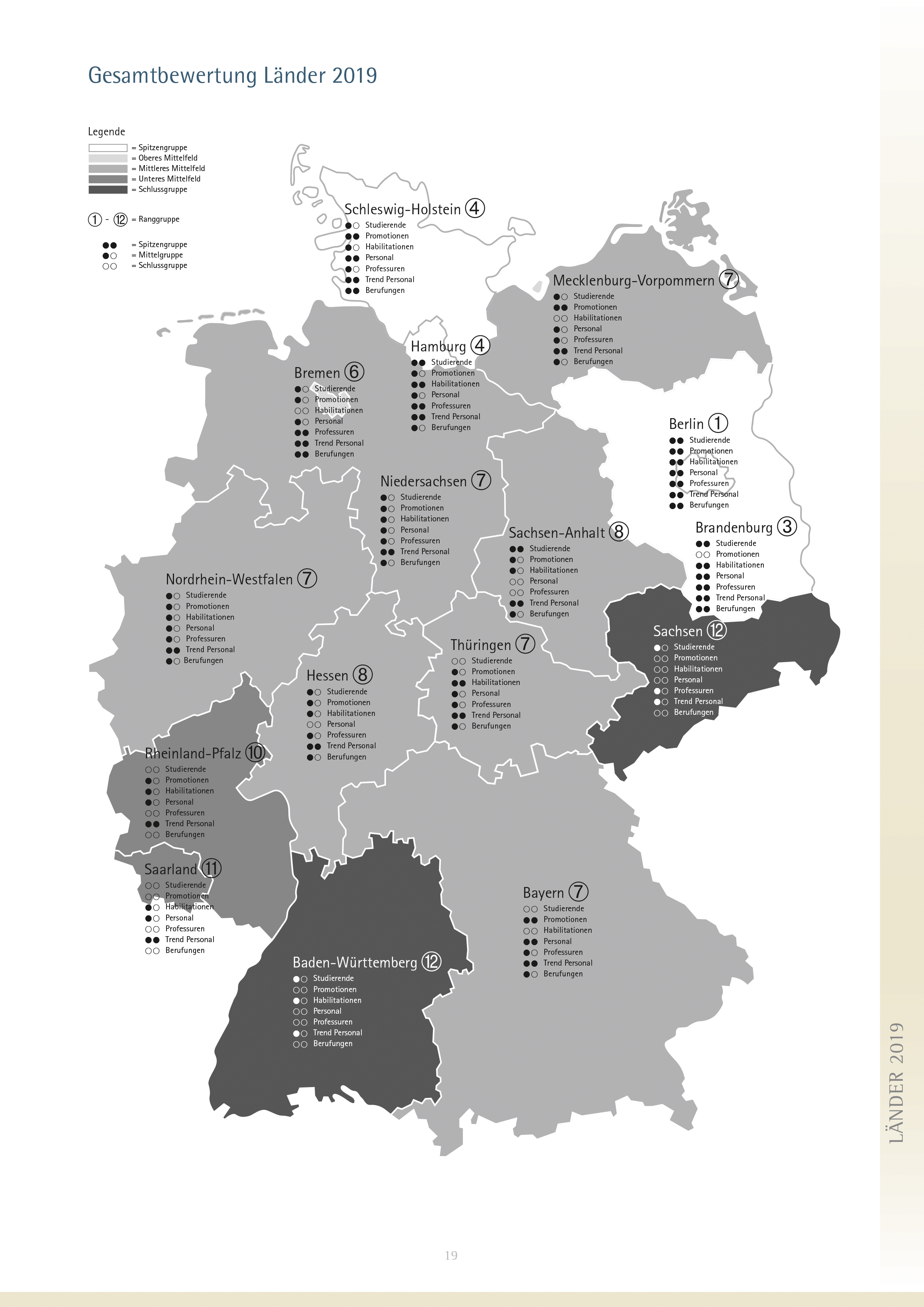 Zusätzlich zu dem Hochschulranking beinhaltet die Veröffentlichung ein Ranking der Bundesländer, das auf ähnlichen Indikatoren beruht.