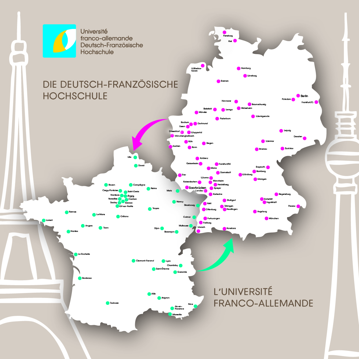 Die Deutsch-Französische Hochschule (DFH) nimmt zum kommenden Wintersemester zwölf neue binationale Studiengänge in ihr Angebot auf. Die neuen Programme führen die Studierenden z.B. von Bayreuth nach Bordeaux, von Saarbrücken nach Straßburg oder von Mainz nach Paris.