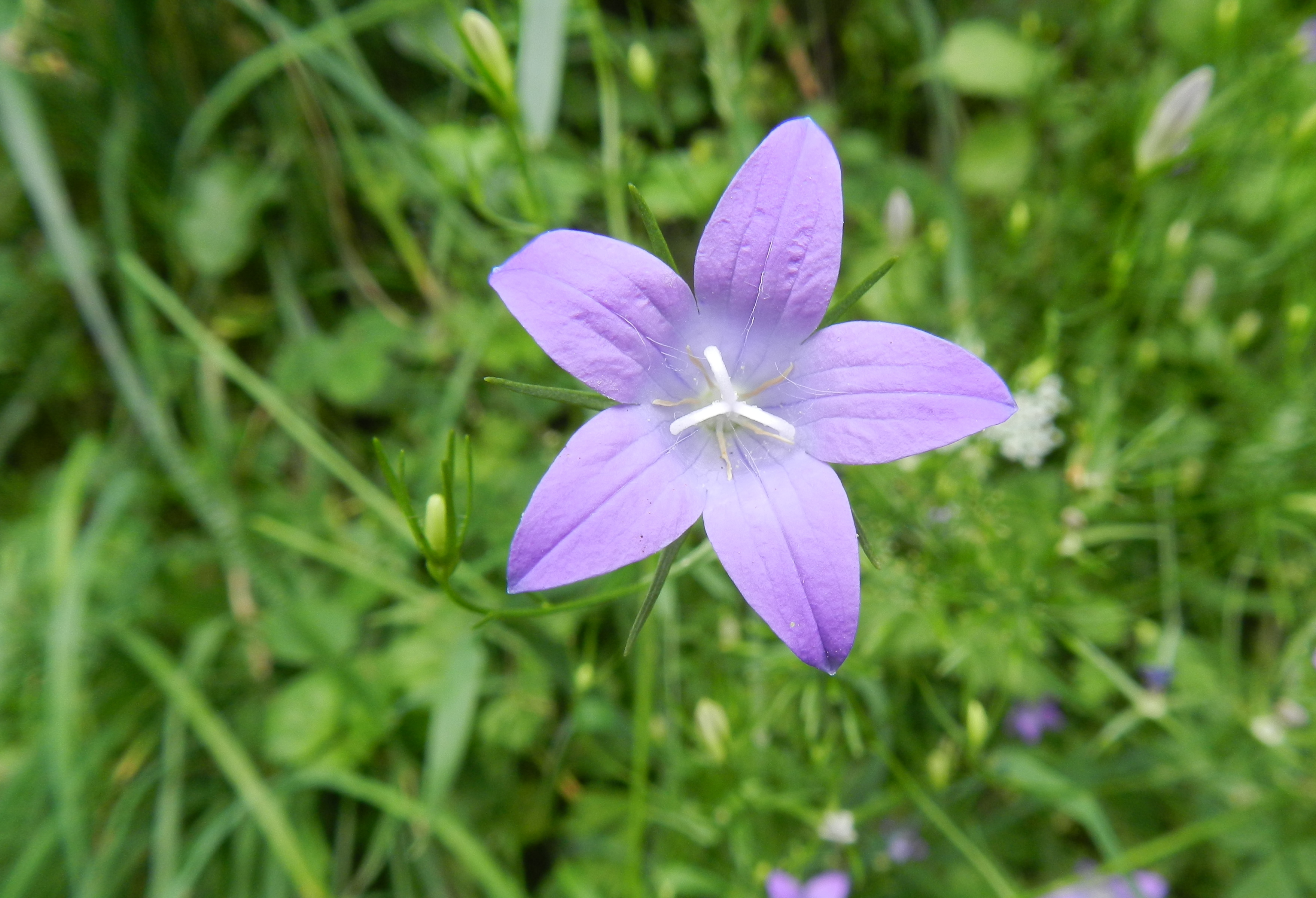 Bildunterschriften: Die Wiesen-Glockenblume (Campanula patula), ist eine der stark zurückgegangenen Arten in Mecklenburg-Vorpommern. Früher in zwei Dritteln aller Messtischblattquadranten vorkommend ist sie heute nur noch sehr selten zu finden, wenn auch noch nicht direkt vom Aussterben bedroht