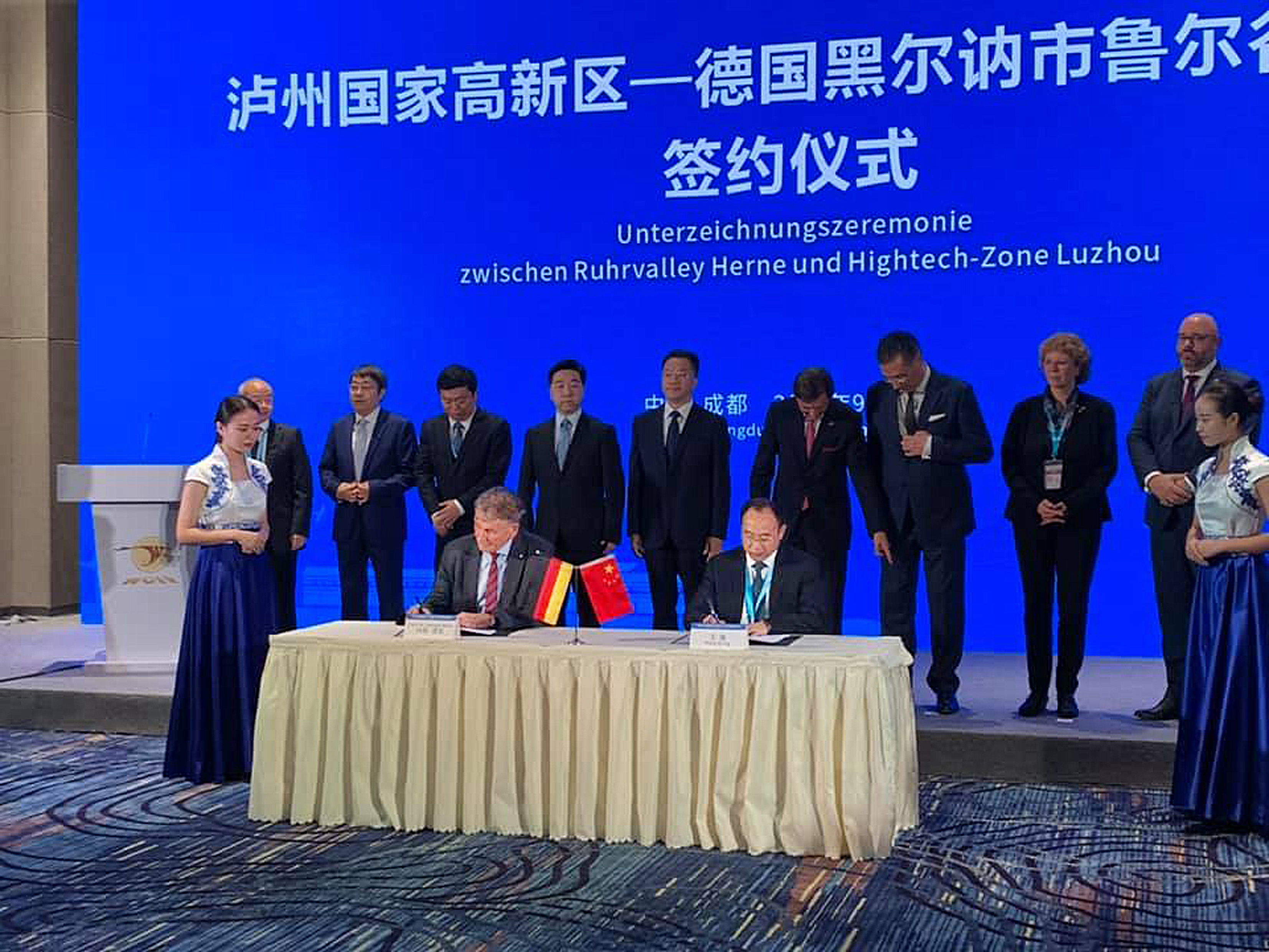 ruhrvalley, der Hochschul- und Unternehmensverbund mit und um die Hochschule Bochum, die Westfälischen Hochschule Gelsenkirchen und die Fachhochschule Dortmund, wird international: Der Verbund mit Sitz in Herne arbeitet zukünftig mit der Luzhou High-Tech Industry Development Zone in der westchinesischen Provinz Sichuan zusammen. Eine Herner Delegation unter Leitung von Oberbürgermeister Dr. Frank Dudda besuchte Mitte September die Region der Partnerstadt Luzhou. Zu ihr gehörte auch der Präsident der Hochschule Bochum, Prof. Dr. Jürgen Bock. Als Mitglied des Vorstands unterzeichnete er in feierlichem Rahmen eine entsprechende Kooperationsvereinbarung für den Verein ruhrvalley Cluster e.V..