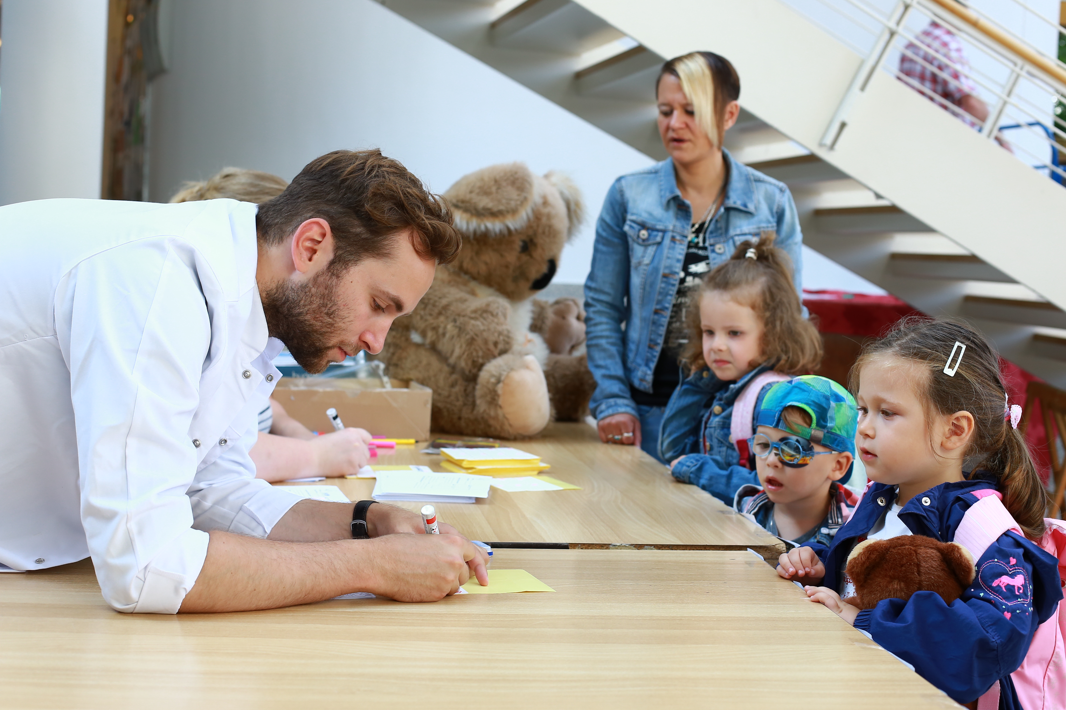 Neben den Kindern profitieren jedoch auch die Studierenden von dem Projekt. Durch den Kontakt mit den kleinen Patientinnen und Patienten schulen sie ihre kommunikativen und psychologischen Fähigkeiten und sammeln zudem Erfahrungen in der Kinderheilkunde. „Das Teddybär-Krankenhaus ist eine gute Vorbereitung auf den Beruf“, sagt Charlotte von Plessen. „Anamnesen bei Kindern durchzuführen ist viel schwerer als bei Erwachsenen. Die Gesprächsführung muss einfach und klar sein – so wie Erwachsene sich das von ihrem Arzt auch manchmal wünschen.“