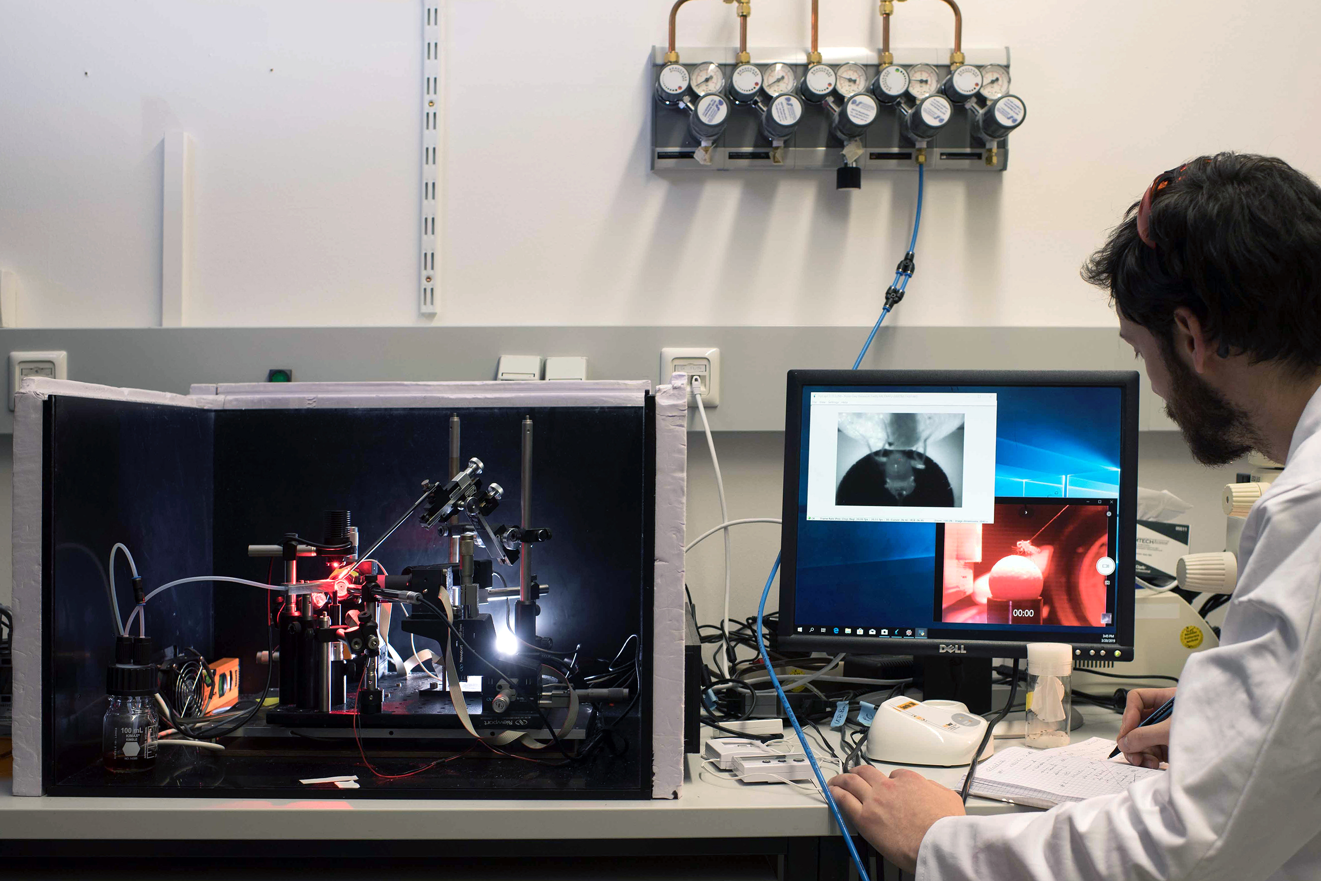 With the movement of their legs they are turning a ball which is floating on an air cushion. The turning speed shows neurobiologist professor Ilona C. Grunwald Kadow how much effort the fruit fly is putting into finding food.