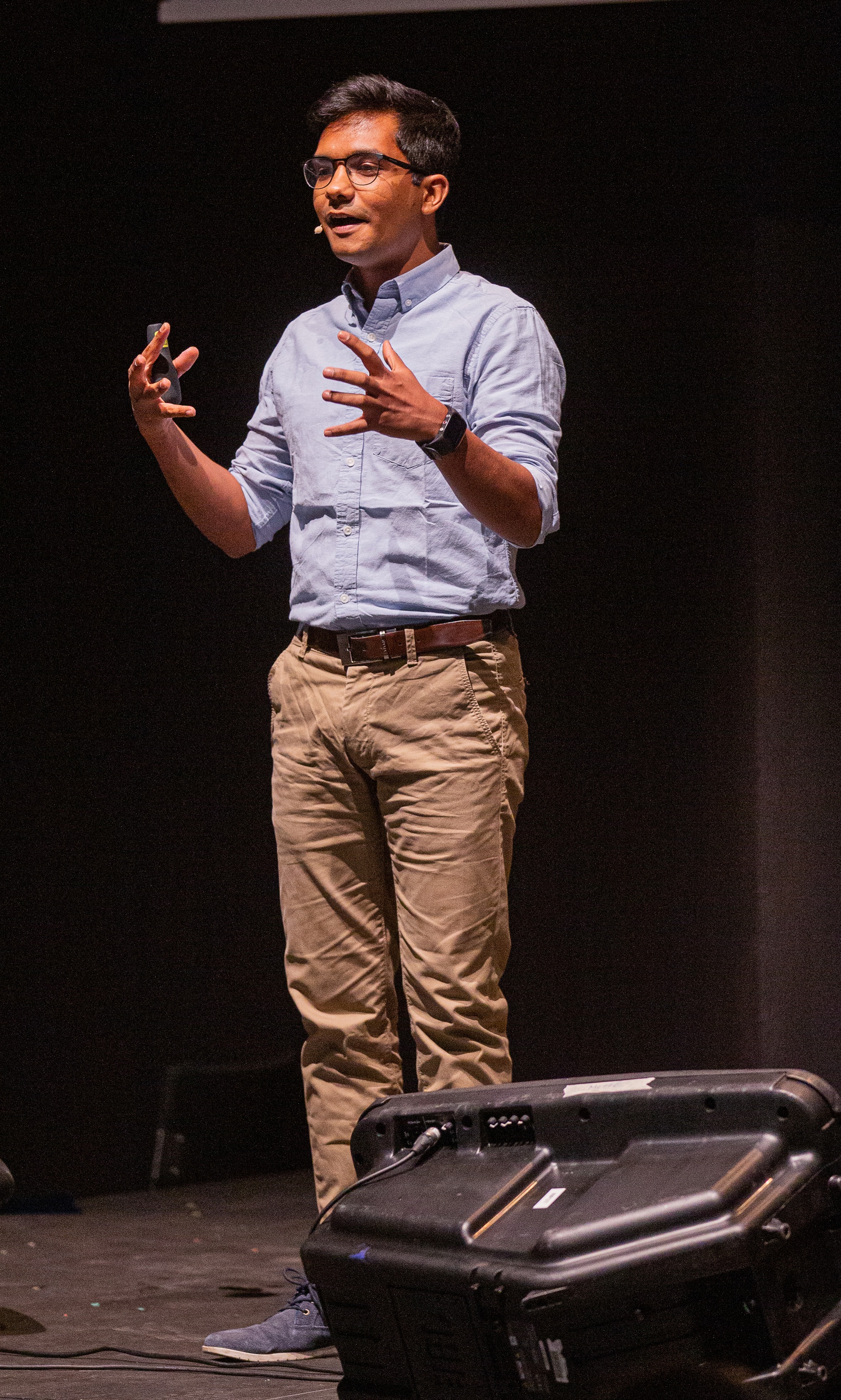 „Ich beteilige mich seit 2015 an Science Slams. Ursprünglich nur als Weg meine Präsentationsfähigkeiten zu verbessern und neue Fachgebiete kennenzulernen. Das ich jetzt europäischer Meister geworden bin, freut mich sehr“, so Dutta. Der indische Doktorand arbeitet seit 2016 in der Gruppe „Mechanismen-basiertes Legierungsdesign“ am MPIE und schließt in diesem Jahr seine Doktorarbeit zu Medium-Mangan-Stählen ab. Mit seinem Slam „Think in Terms of an Auflauf“ (auf Deutsch: „Denken Sie im Sinne eines Auflaufs“) erklärte Dutta sogenannte Hochentropielegierungen. Dies sind Legierungen aus mehr als fünf Elementen, in gleichen Anteilen. Durch diese Art der Zusammensetzung ergeben sich besondere Eigenschaften des Gesamtmaterials.