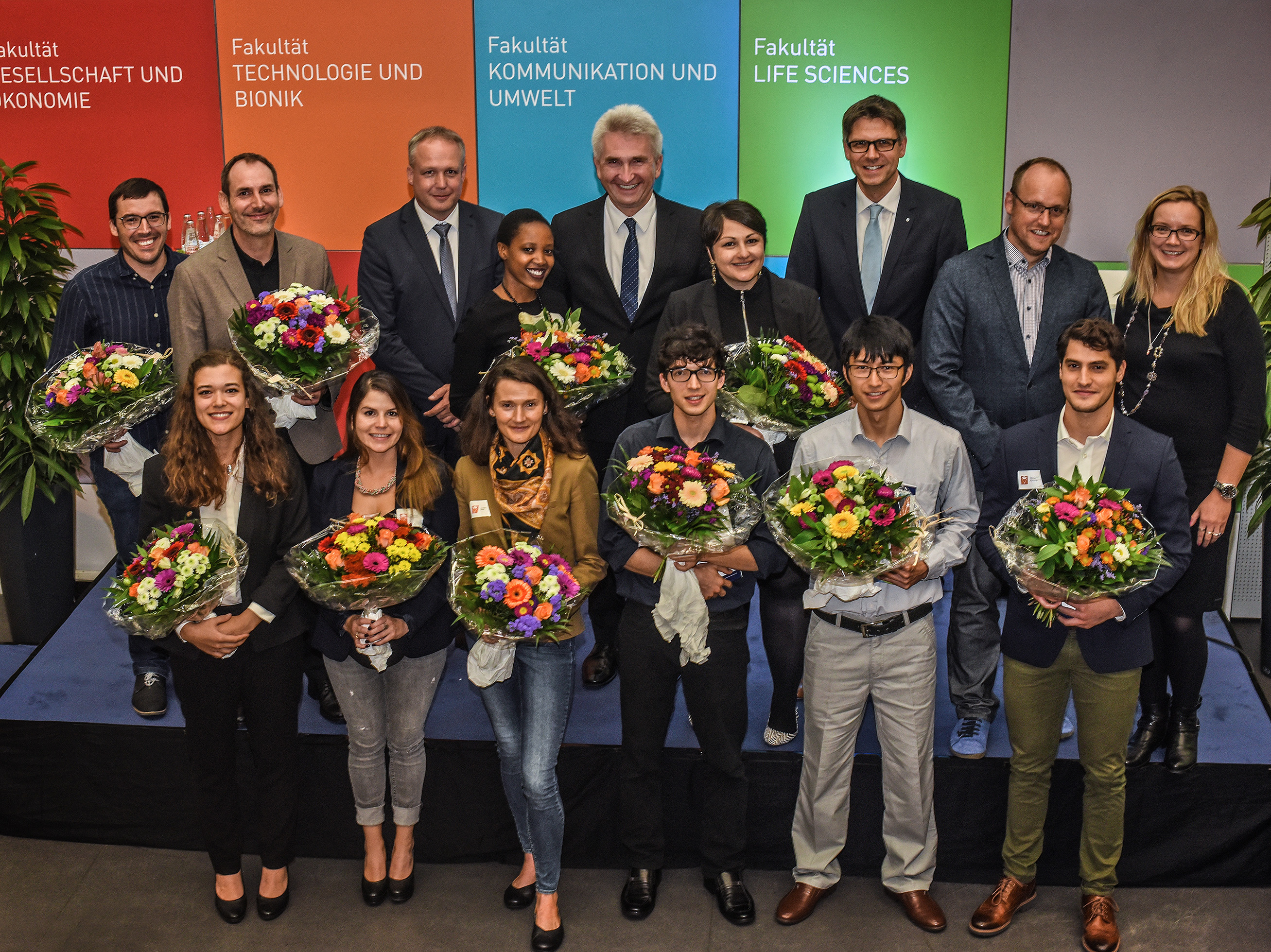 Wie in den Jahren zuvor wurden während der Veranstaltung Studierende für ihre herausragenden Leistungen und ihr außerordentliches soziales Engagement sowie ein Professor der Fakultät Kommunikation und Umwelt für sein besonderes Engagement in der Lehre ausgezeichnet.
