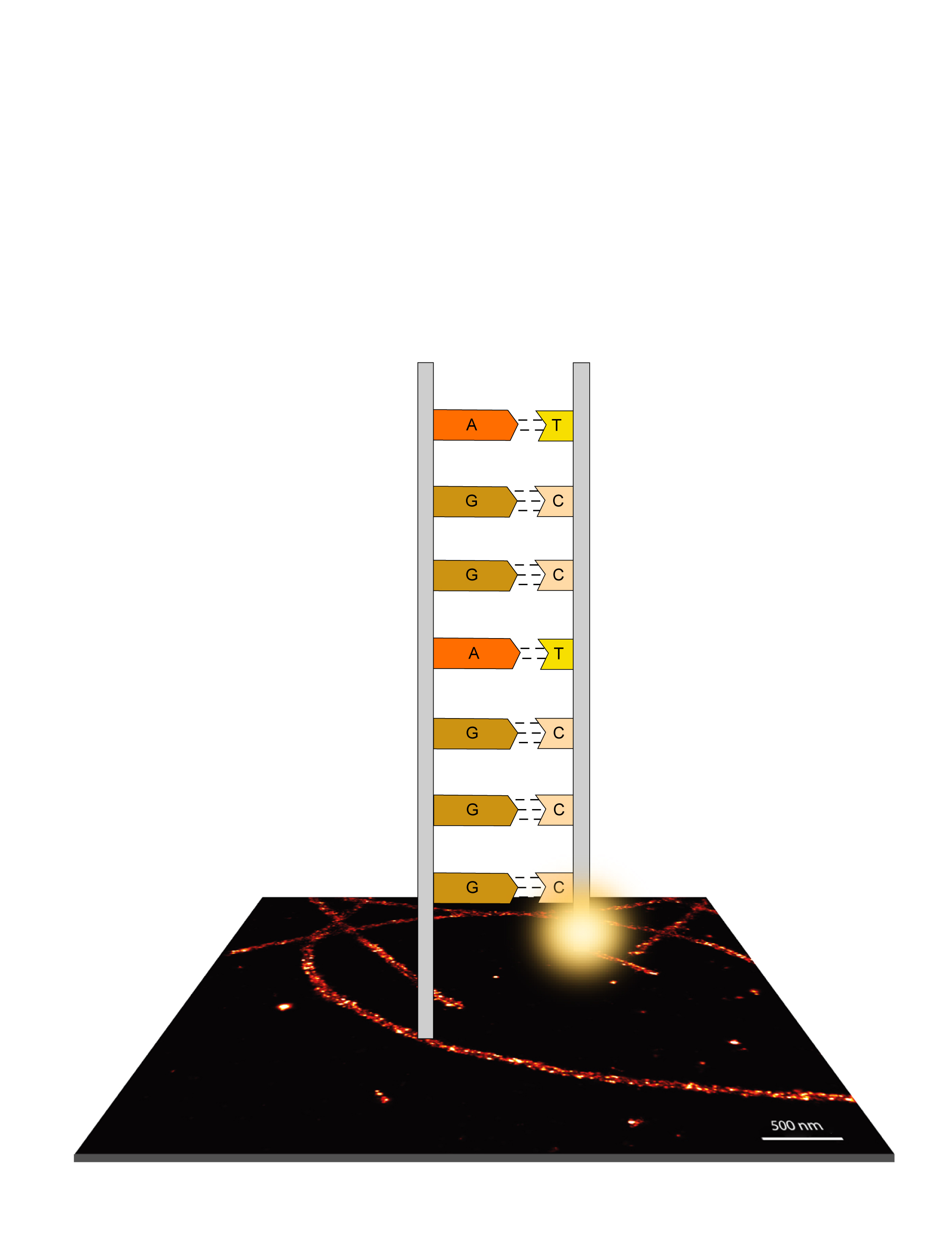 „In den letzten Jahren haben wir die Technik in vielen Bereichen verbessert. Eine große Einschränkung hat uns jedoch immer daran gehindert DNA-PAINT für biologisch relevante Hochdurchsatzstudien einzusetzen: Die vergleichsweise langsame Bildaufnahme“, sagt Jungmann. Klassische DNA-PAINT-Experimente nehmen üblicherweise mehrere zehn Minuten bis hin zu Stunden in Anspruch. „Wir haben uns genau angeschaut, warum das so lange dauert“, so Florian Schüder, Erstautor der Studie und Mitarbeiter im Labor von Jungmann. „Durch optimiertes DNA-Sequenzdesign und verbesserte Pufferbedingungen konnten wir die Geschwindigkeit um einen Faktor 10 erhöhen“, so Schüder weiter. Hierzu haben die Forscher in Kollaboration mit der Abteilung von Petra Schwille den Einfluss der DNA-Sequenz und der Basenabfolge auf die Geschwindigkeit der Hybridisierung, also das Ausbilden der Doppelhelix, untersucht. Der farbstoffmarkierte Einzelstrang, bei DNA-PAINT auch ‚Imager‘ genannt, besteht generell aus den Grundbausteinen der DNA, den vier Basen: Adenin (A), Thymin (T), Guanin (G) und Cytosin (C). Der Einfluss der Basenkomposition und Länge der Einzelstränge auf die Bindezeit ist recht gut verstanden: Je länger der Doppelstrang und je mehr GC-Basenpaare in der Sequenz vorhanden sind, desto stabiler ist der DNA-Duplex und desto länger die Bindezeit. Der Einfluss auf die Geschwindigkeit der Duplexbildung, und damit die Blinkgeschwindikgeit in DNA-PAINT, ist jedoch deutlich schlechter untersucht. Hier konnten die Forscher nun zeigen, dass die Ausbildung intramolekularer Haarnadelkonformationen, also das Falten mit sich selbst, in kurzen Strängen durch die Reduktion auf zwei Basen (z.B. nur T und C statt A, T, C, G) vollständig unterbunden werden kann. „Wir haben jetzt die Stränge so entworfen, dass wir nur ein sogenanntes ‚Zweibuchstabenalphabet‘, z.B. nur T und C oder nur A und G, benutzen. So konnten wir die Bindefrequenz bereits um einen Faktor 5 steigern“, erklärt Schüder. „Durch weitere Optimierungen am verwendeten Puffersystem konnten wir zusätzlich einen Faktor 2 rausholen, so dass wir jetzt 10-mal schneller Bilder aufnehmen können“.