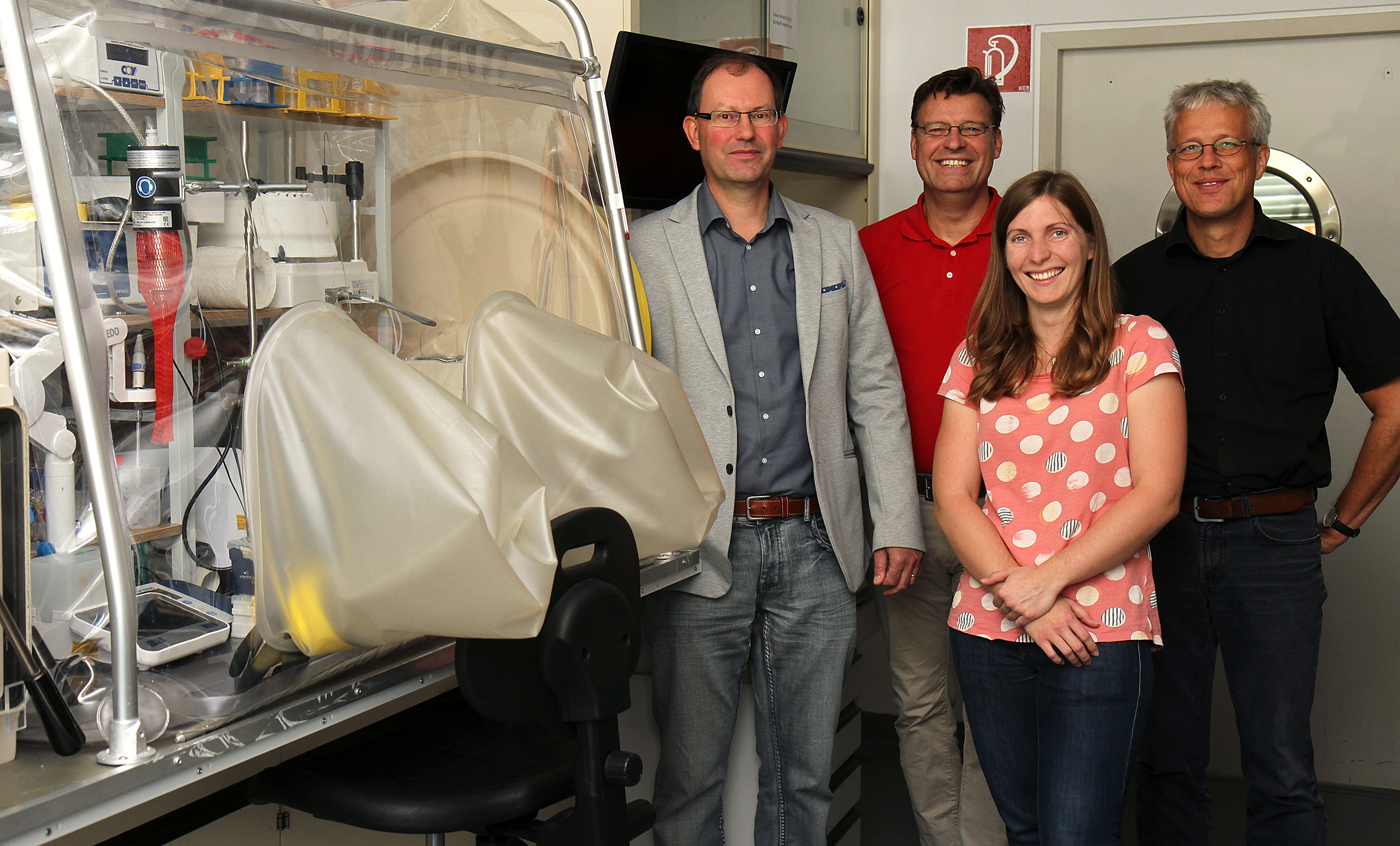Professor Schünemann und seine Arbeitsgruppe aus dem Lehrgebiet Biophysik und Medizinische Physik verwenden die Mössbauer-Spektroskopie. „Hierbei handelt es sich um ein Analyseverfahren, bei dem die Absorption von hochenergetischer Röntgenstrahlung vom Atomkern des Eisens ausgenutzt wird“, erläutert Schünemann. Mithilfe der beiden Techniken erhalten beide Teams im Anschluss ein genaues Bild über die Zusammensetzung der Metallzentren.