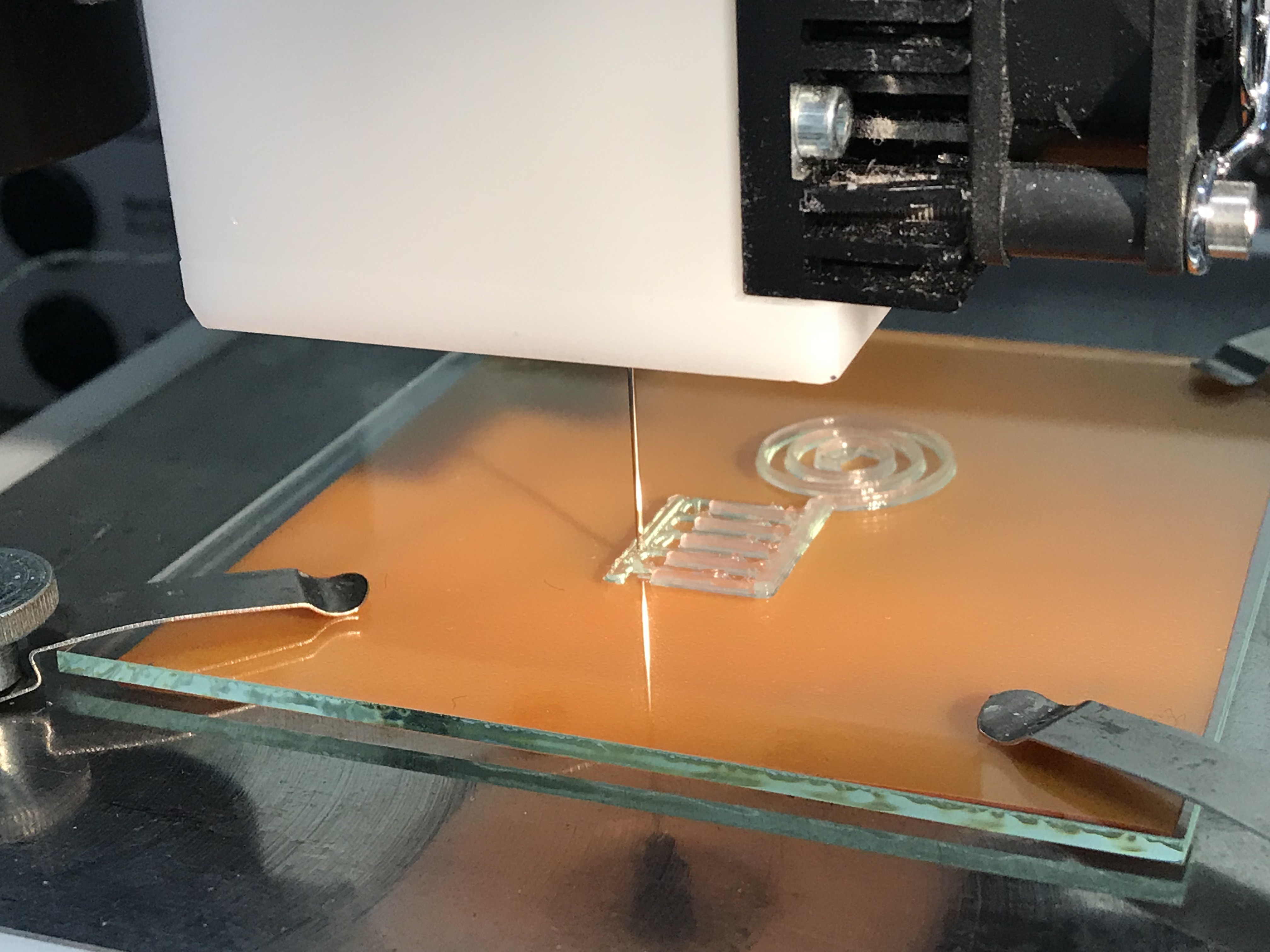 Using a 3D printer, the nanocellulose "ink" is applied to a carrier plate. Silver particles provide the electrical conductivity of the material. Image: Empa