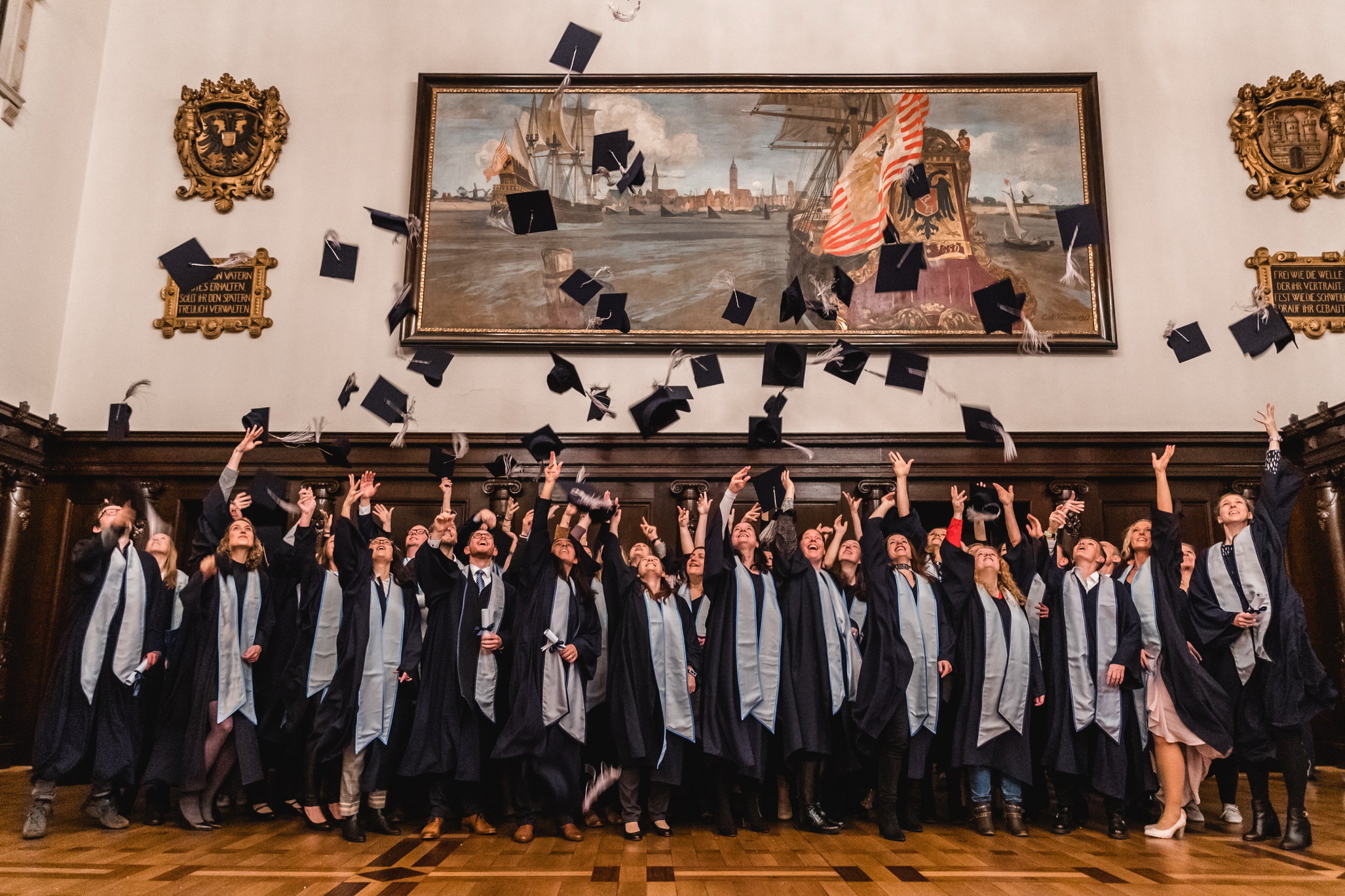 In diesem Jahr haben insgesamt 150 Bachelor- und Master-Studierende ihren Abschluss an der APOLLON Hochschule der Gesundheitswirtschaft erlangt. Der Traum vom traditionellen Hütewerfen zum Studienabschluss wurde für 60 von ihnen am Samstag, 12. Oktober 2019, in Bremen wahr. Gemeinsam mit Kommilitonen, Familienmitgliedern und Freunden zelebrierten sie ihren Fernstudienabschluss an der APOLLON Hochschule der Gesundheitswirtschaft. Den würdigen Rahmen für die feierliche Verabschiedung samt Urkundenübergabe bildete in diesem Jahr erneut das Rathaus Bremen.