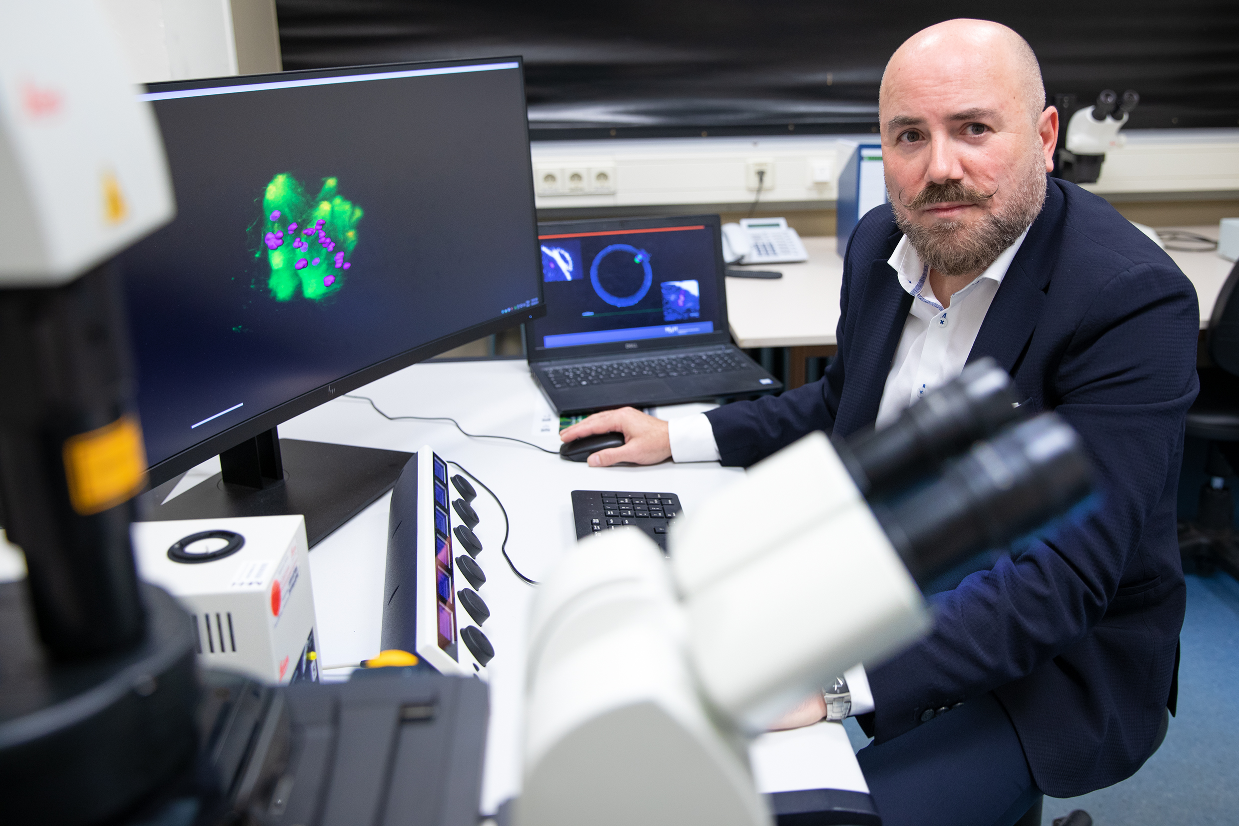 Bevor sich die Chromosomenpaare aufteilen, bildet die Eizelle in ihrem Inneren eine Struktur aus, die den Prozess steuert. Der sogenannte Spindelapparat ordnet die Chromosomen paarweise in einer Ebene an und zieht dann jede Hälfte zu den gegenüberliegenden Spindelpolen. „Solche Prozesse sind vor allem in Mäusen erforscht“, erklärt Professor Tsiavaliaris. „Wir haben die Vorgänge in unbefruchteten menschlichen Eizellen untersucht, die wir von Spenderinnen für unsere Forschung aus der Klinik für Reproduktionsmedizin in Bad Münder erhalten.“