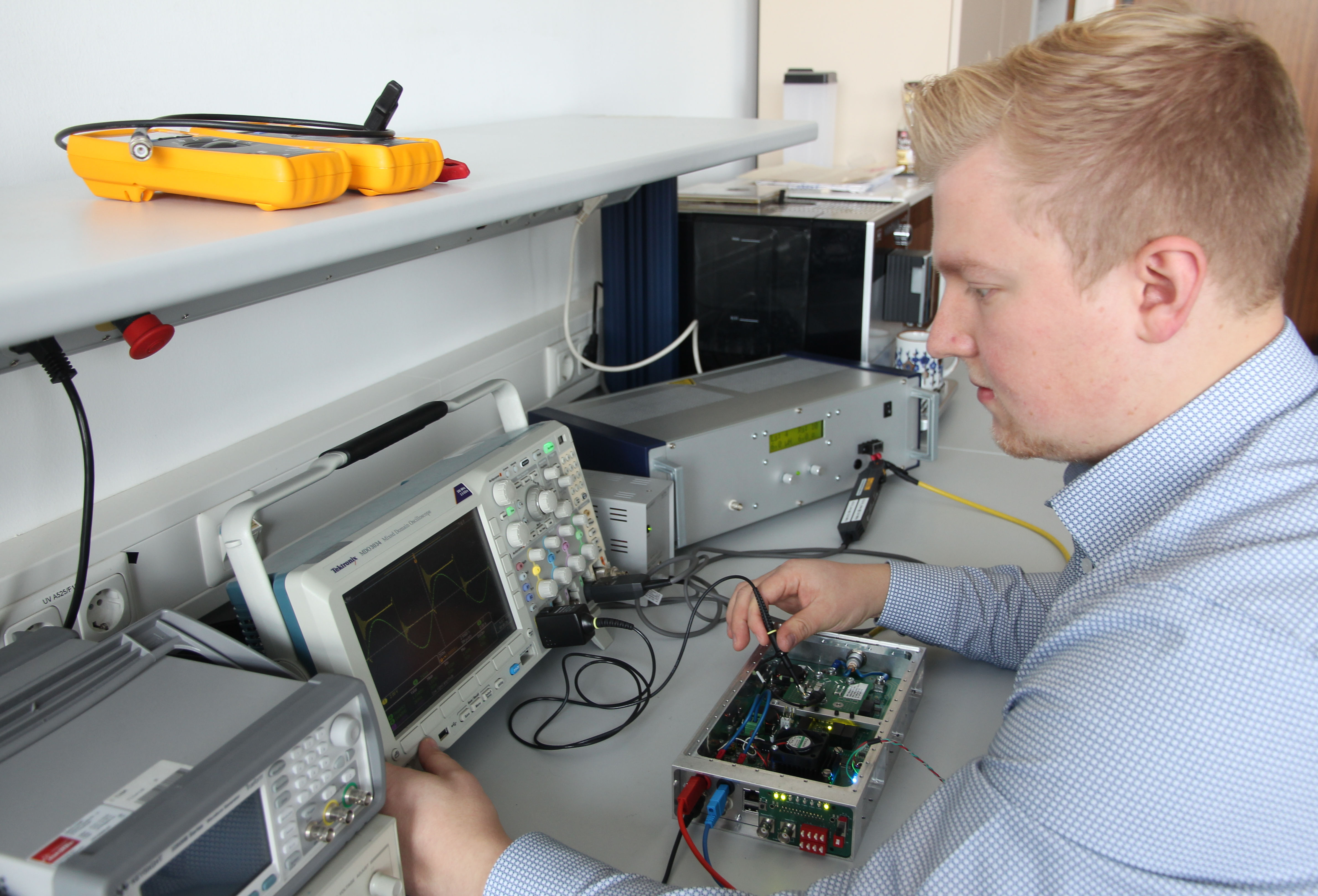 Das Team von Prof. Probst hat sich zum Ziel gesetzt, einen digital geregelten Radiofrequenz-Generator mit Vollbrückenwandler zu bauen, um durch eine höhere Ausgangsspannung die Stromwärmeverluste zwischen Generator und Triebwerk deutlich zu reduzieren. Als Grundlage für eine Regelung der an das Triebwerk übertragenen Leistung sollen die erforderlichen Steueralgorithmen digital in einen programmierbaren integrierten Schaltkreis eingebunden werden.